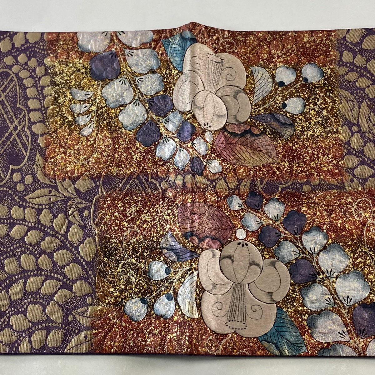 | 袋帯 美品 秀品 関西仕立て 辻が花 刺繍 金銀彩 紫 お太鼓柄 正絹 【中古】 |