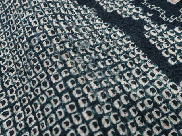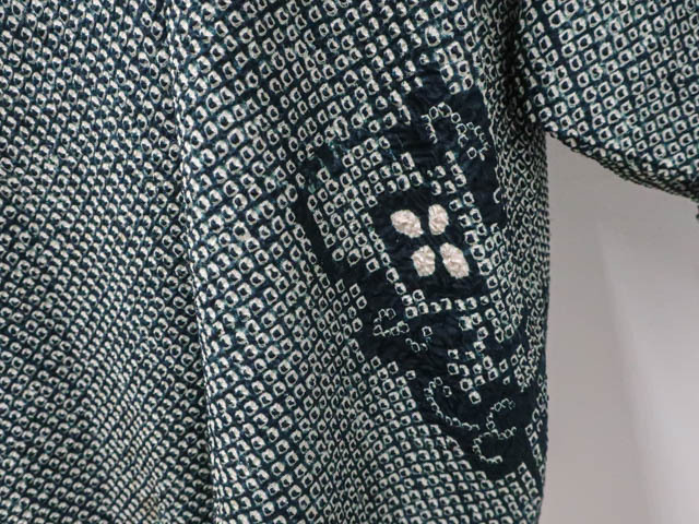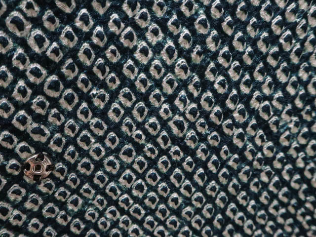 リサイクル商品のため、衿や袖にシミ、左後身頃にスレや毛羽立ちがございますが着用可能なお品です。 地色は深緑です。 1枚目の画像が近いお色かと思われます。 素材は正絹です。 |