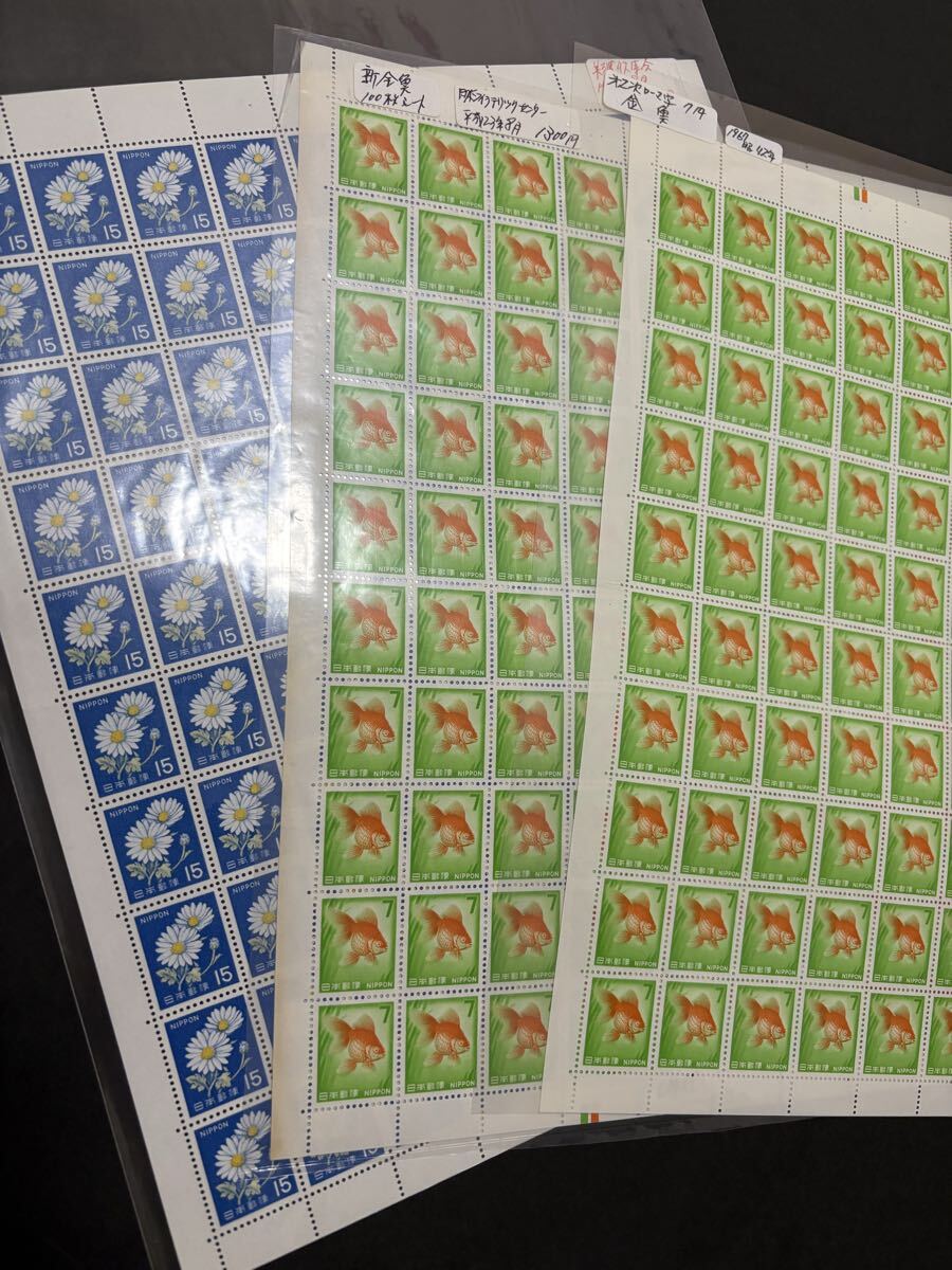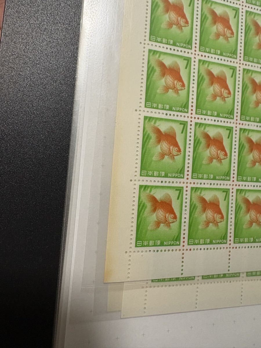 コレクション品を整理し始めました。3シートまとめてのご発送です。金魚のシートはシミがあるためアップで撮ってあります。