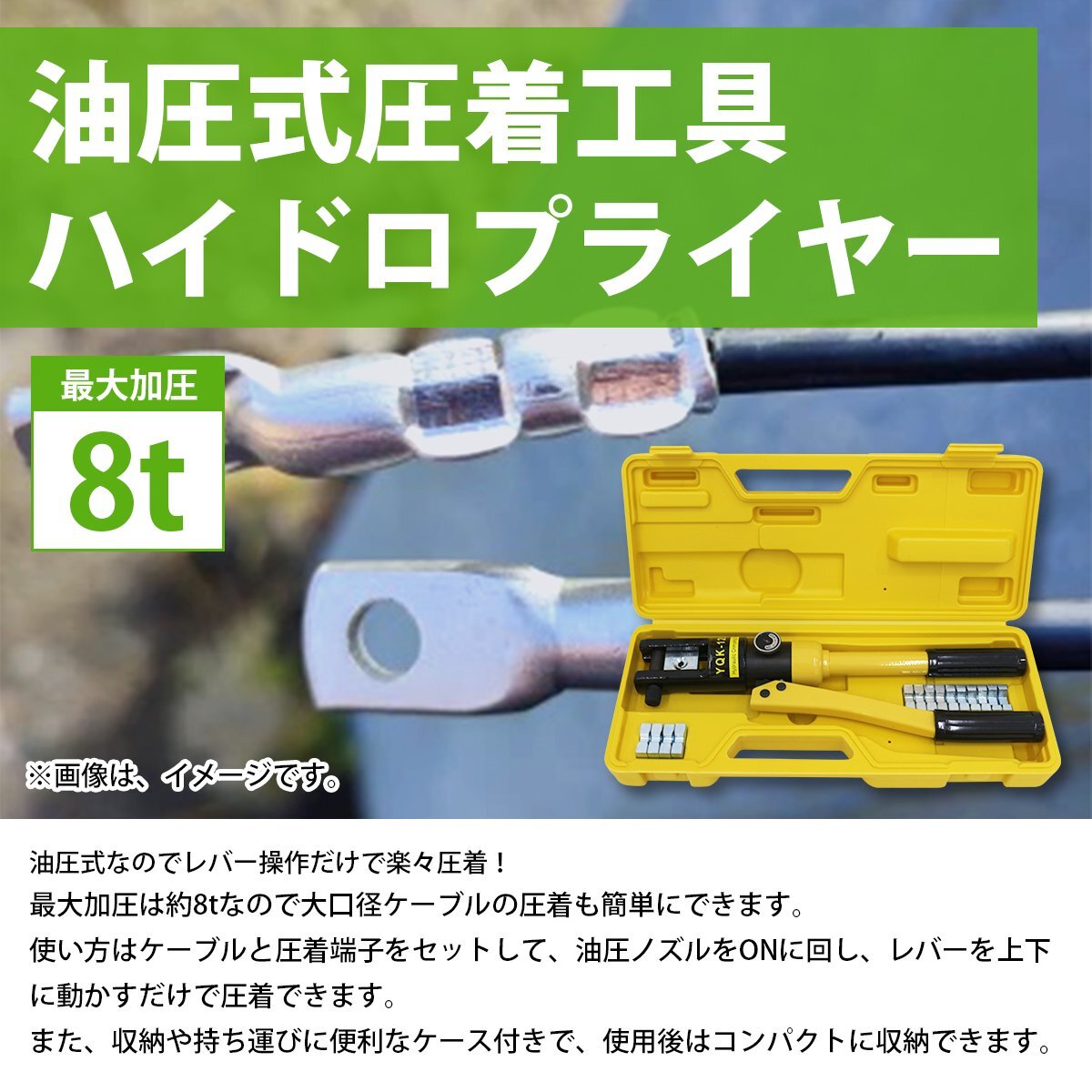 【送料無料】8t ハイドロプライヤー 油圧式圧着工具 ヘキサゴンダイス 8種 電気 配線 ケーブル 六角 圧着 グリッププライヤー ダイス8種付