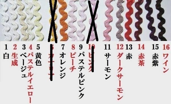 画像はやや濃い目に写っており、分かる範囲で色の名前を記載しました