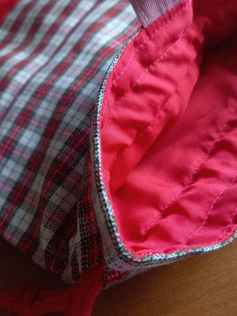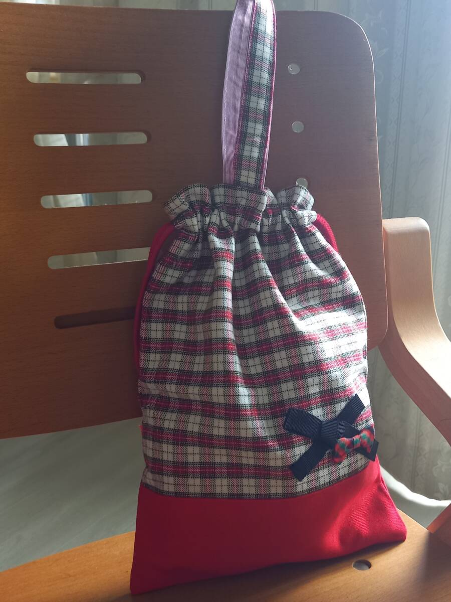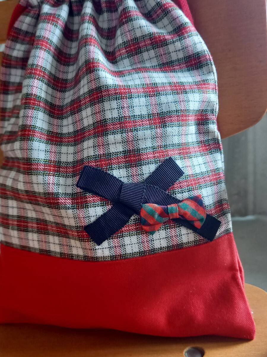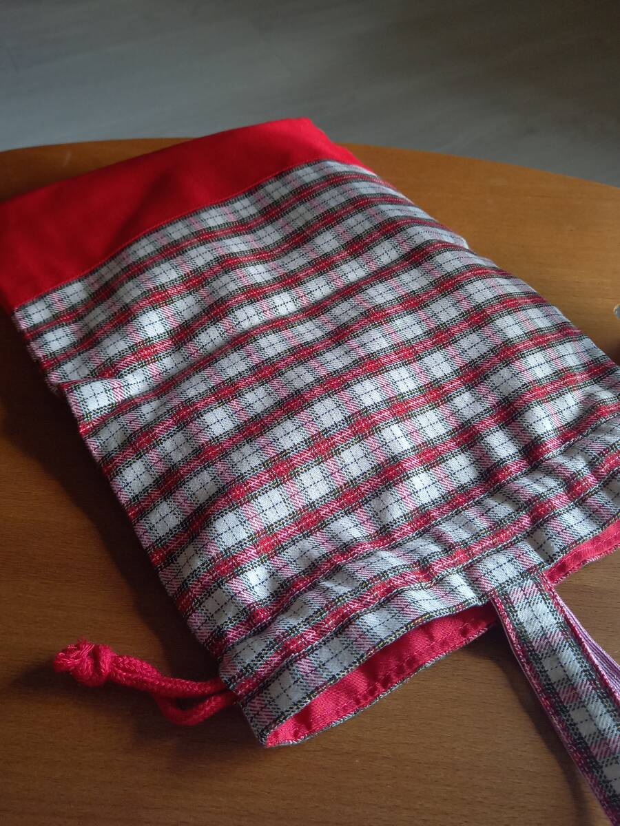 防水&汚れ対応♪ハンドメイドfamilia生地使用シューズ袋♪上履き21cm位まで/赤チェック/ゆうパケットポストミニ180円