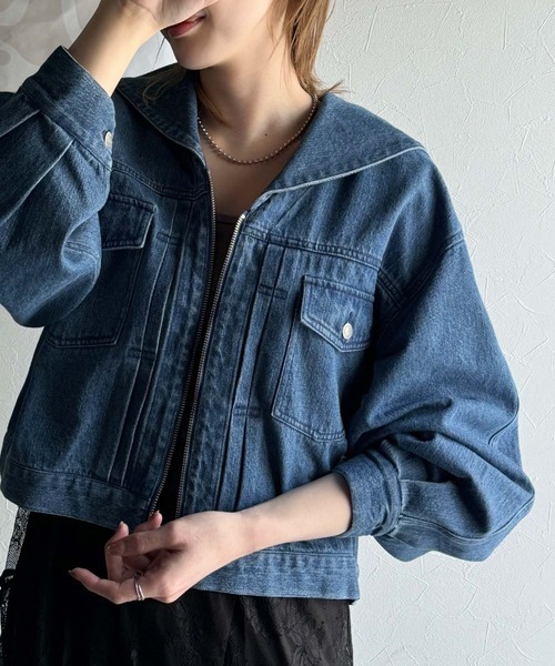 参考商品名:1枚で旬顔コーデ♪セーラーカラーデニムジャケット