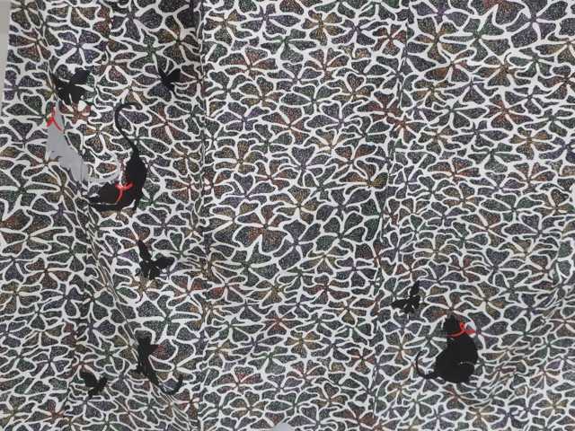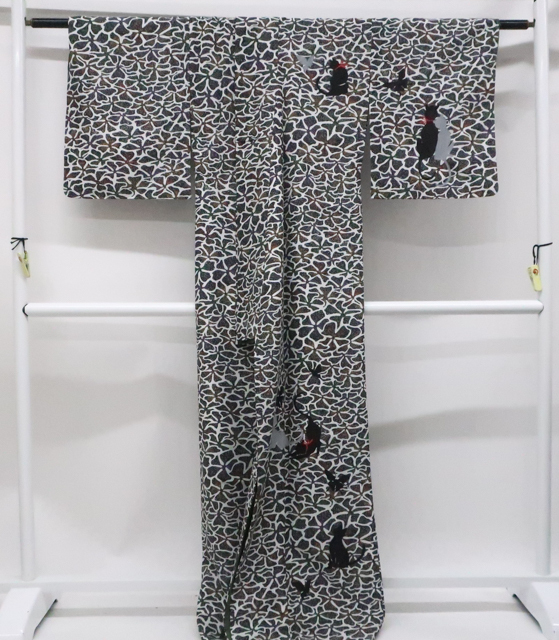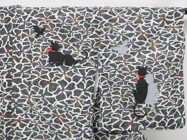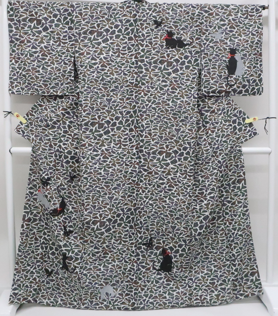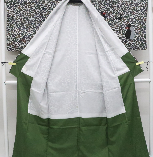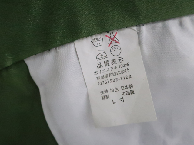 | リサイクル商品のため、胴裏、八掛にシミがございますが着用可能なお品です。 地色は生成・深緑です。 1枚目の画像が近いお色かと思われます。 素材はポリエステルです。 |