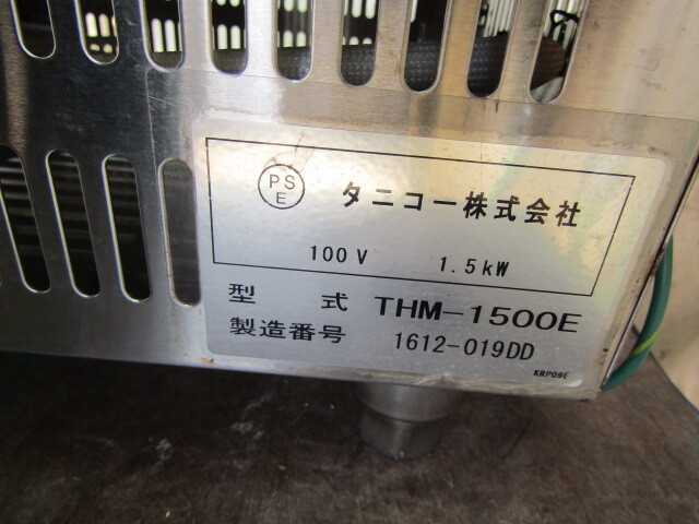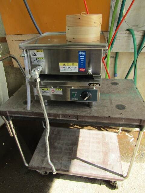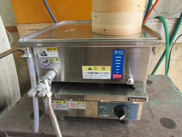 タニコー 電気蒸し器 THM-1500E 厨房機器 電気蒸気 卓上 蒸し器 tanico AC100V のご紹介です。中古品ですが使用にに支障をきたすような大きな傷、破損はありません。(水位計は取り外されておりました。ご了承ください。)AC100Vで稼働します。初期動作時の使用に耐えない破損、不良がありました場合、返品していただいてかまいません。返品の場合は、到着後、3日以内にご連絡ください。