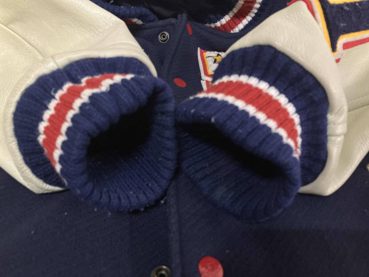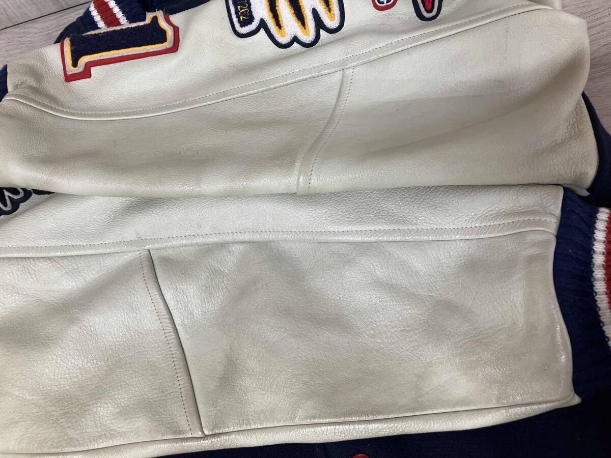 画像の物が全てです。 毛玉、レザーの黒ずみがございます。 着丈:約65cm袖丈:約65cm身幅:約66cm肩幅:約56cm |