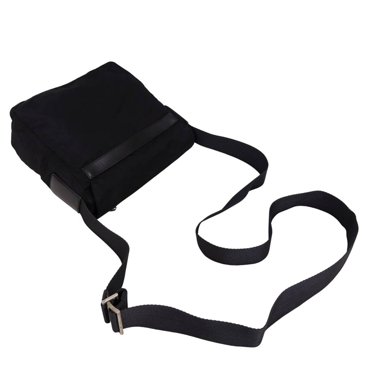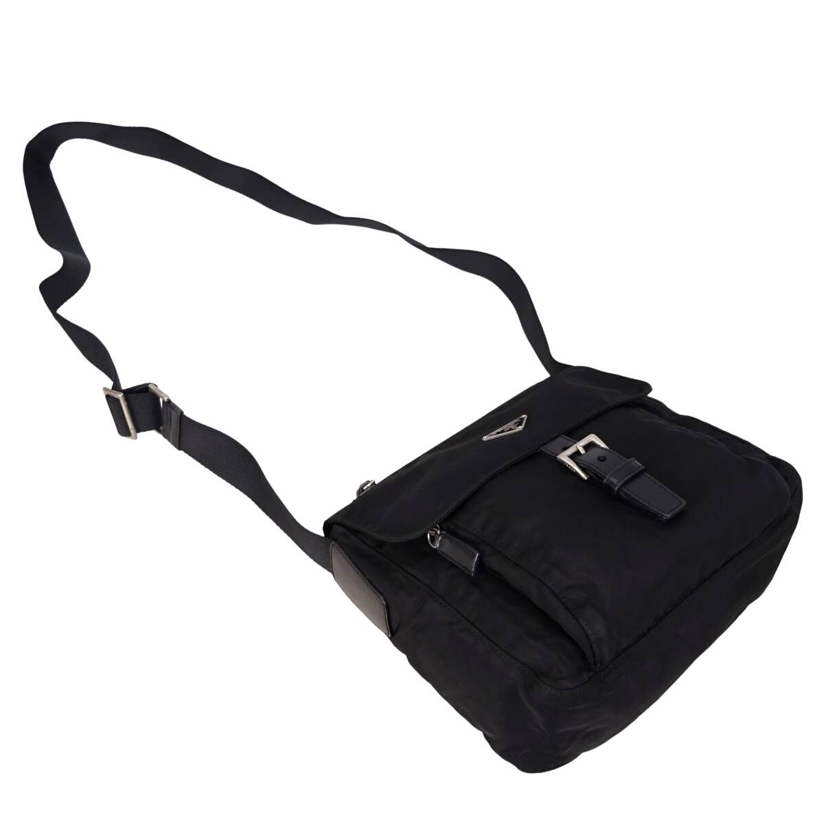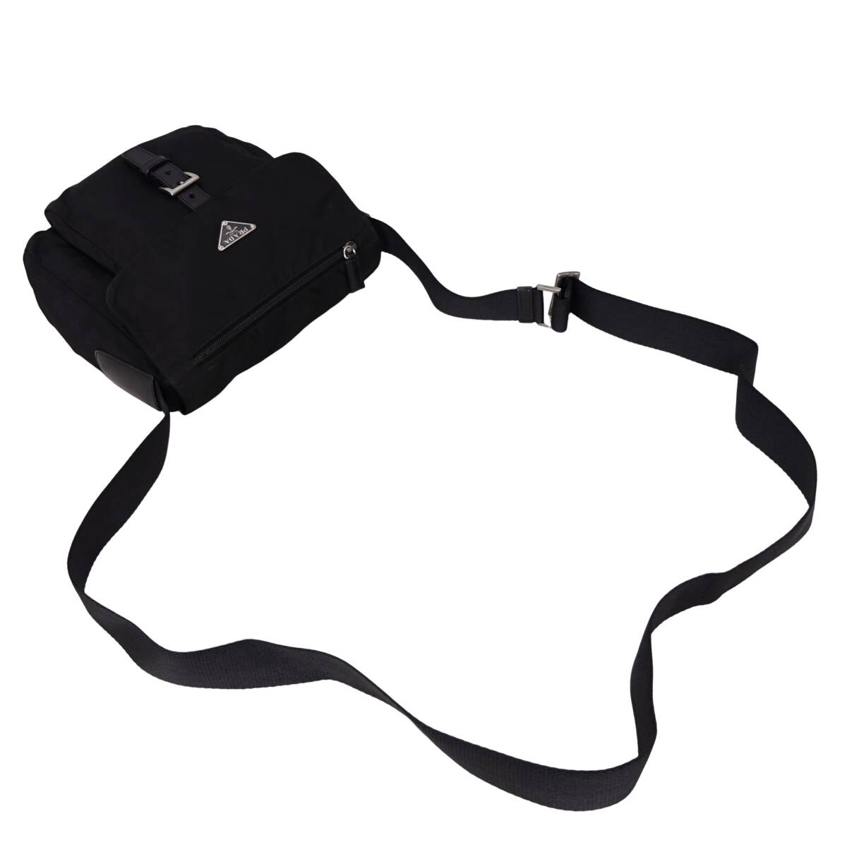 本物 ■プラダ■メッセンジャー クロスボディ 三角ロゴ ブラック ナイロン レザー 斜めがけショルダーバッグ
