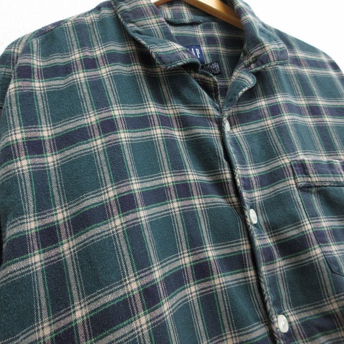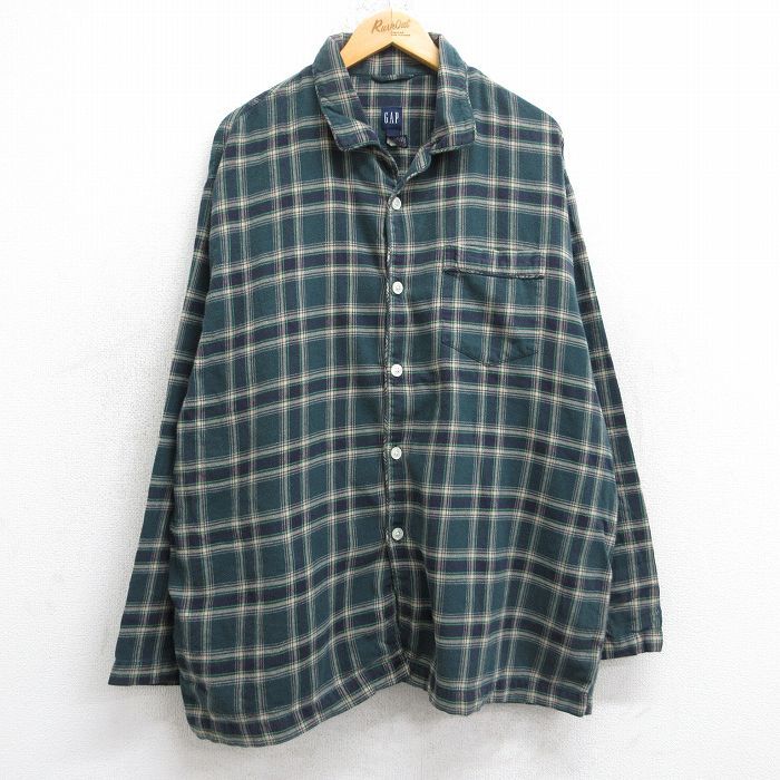 【商品名】 XL★古着 ギャップ GAP 長袖 パジャマ フランネル シャツ メンズ 00年代 00s 大きいサイズ ロング丈 コットン 開襟 オープンカラー 濃緑他 チェック
