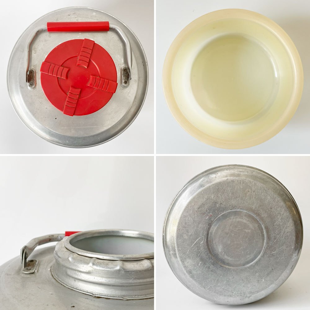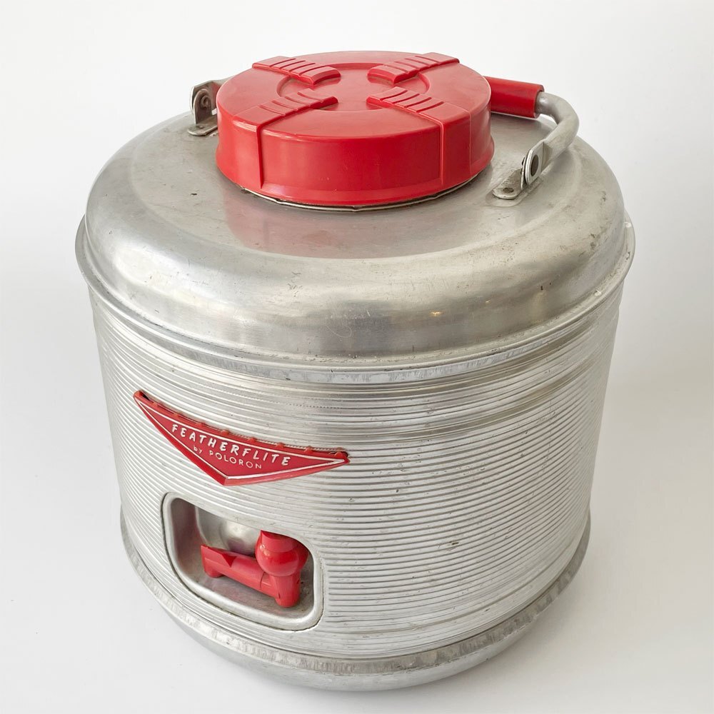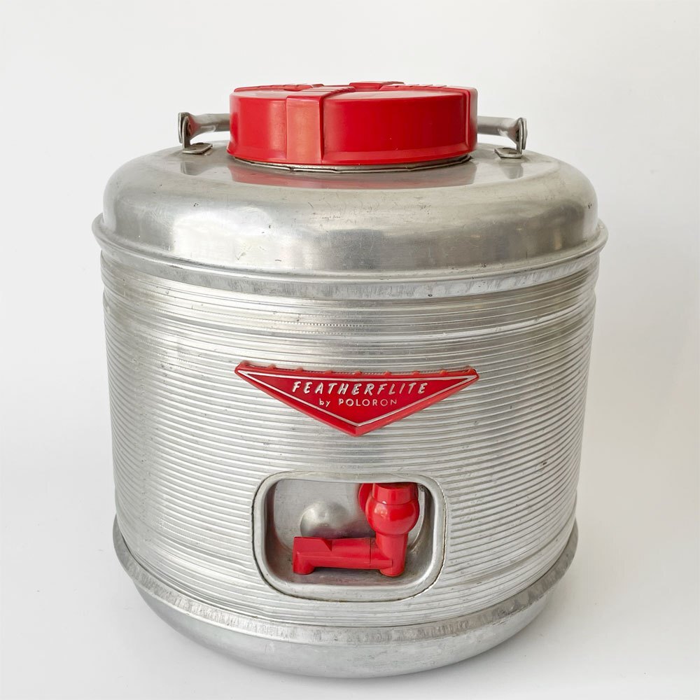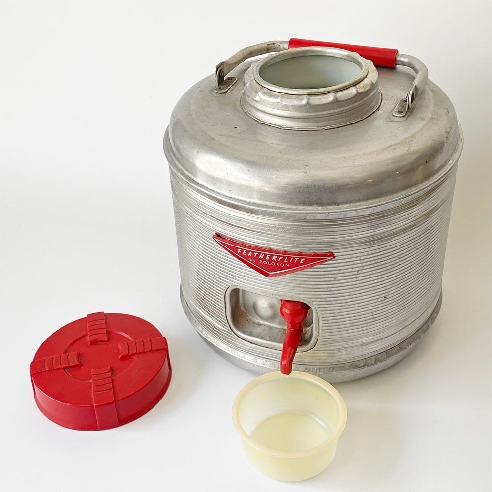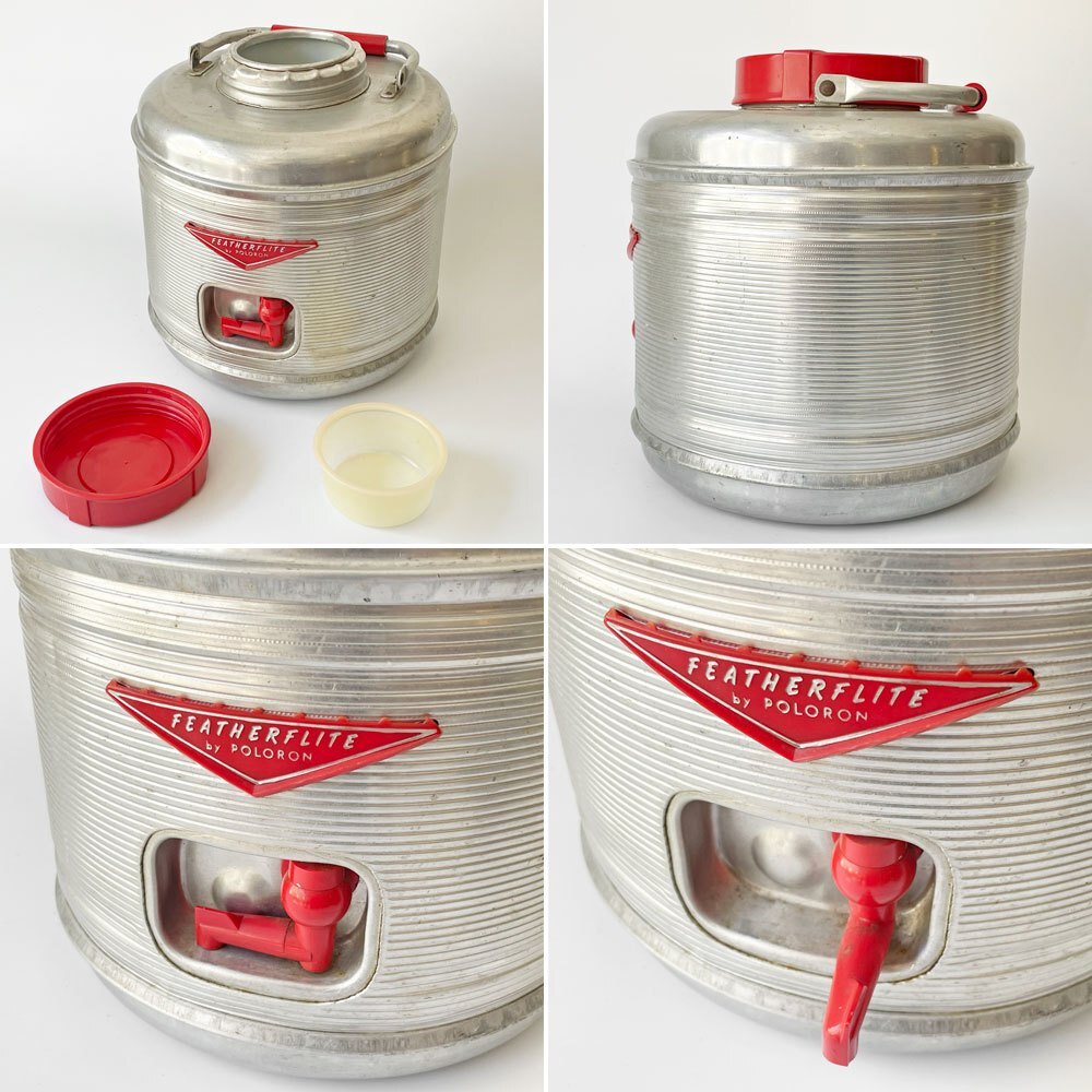コメント | アメリカ" ポロロン/Poloron"社より「Fetherflite」 ウォータージャグです。 経年により風合いを増した、アルミ製のメタリックなボディが良い味を出しています。 ほっこりとしたレッドカラーとのコントラストが魅力的です。 スライドコック式で両手が使え、ホット・コールド両用に対応しております。 レトロな雰囲気が漂うビンテージジャグ。 部屋に置いておくだけでインテリアとしても画になるアイテムです。 ※当ショップは、主にリサイクル品を取り扱っております。基本的にUSED品である事をご理解頂き、ご入札をご検討下さいませ。 |