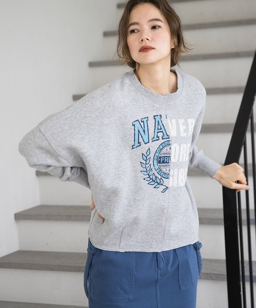 キーワード:トレーナー スウェット レディース プリント 七分袖 五分袖