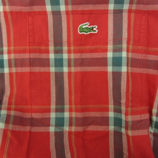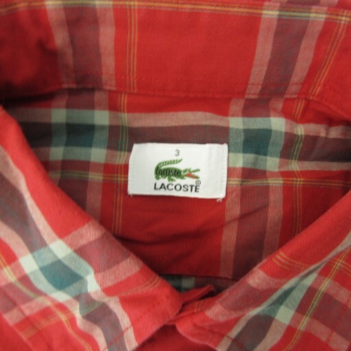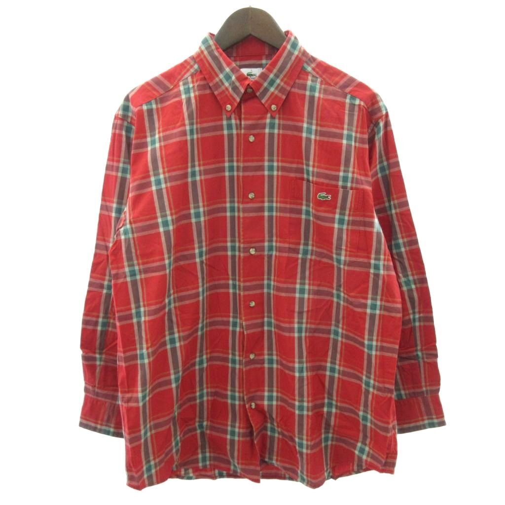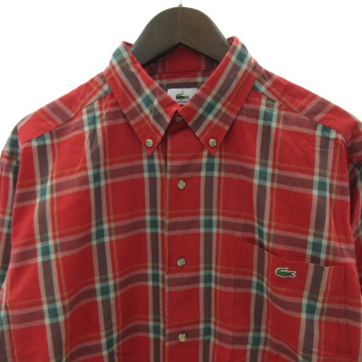 ラコステ LACOSTE 美品 ボタンダウン シャツ BD チェック ロゴ刺しゅう ワニ 赤 レッド 3 約L ■YHS5 メンズ