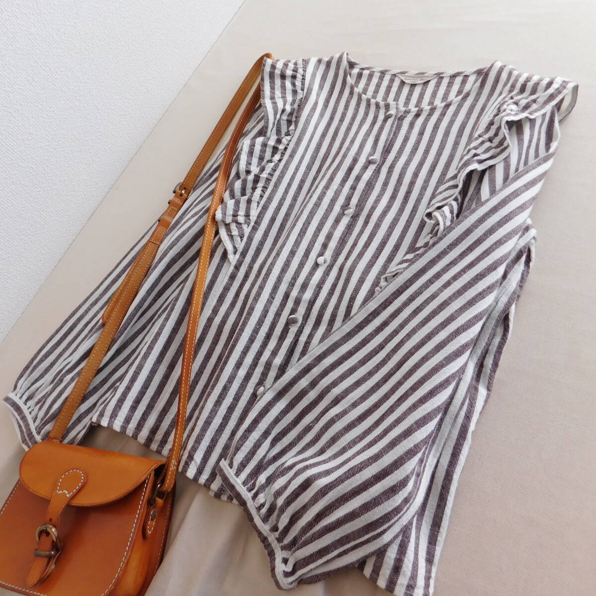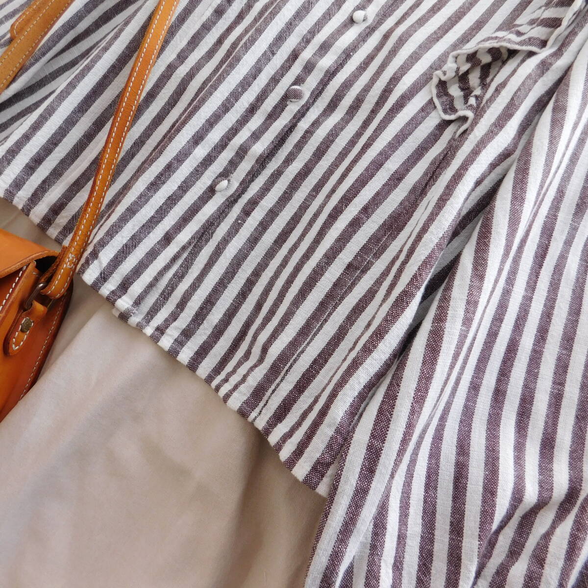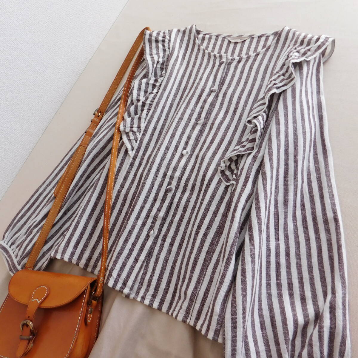 ココアカラーのストライプブラウスがかわいいです。