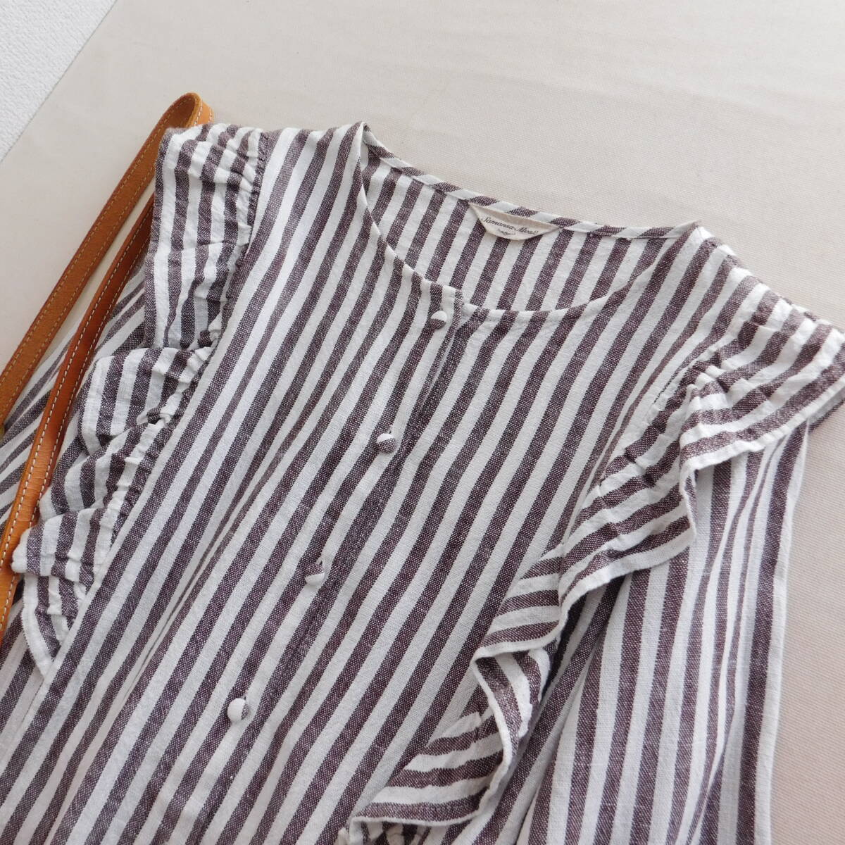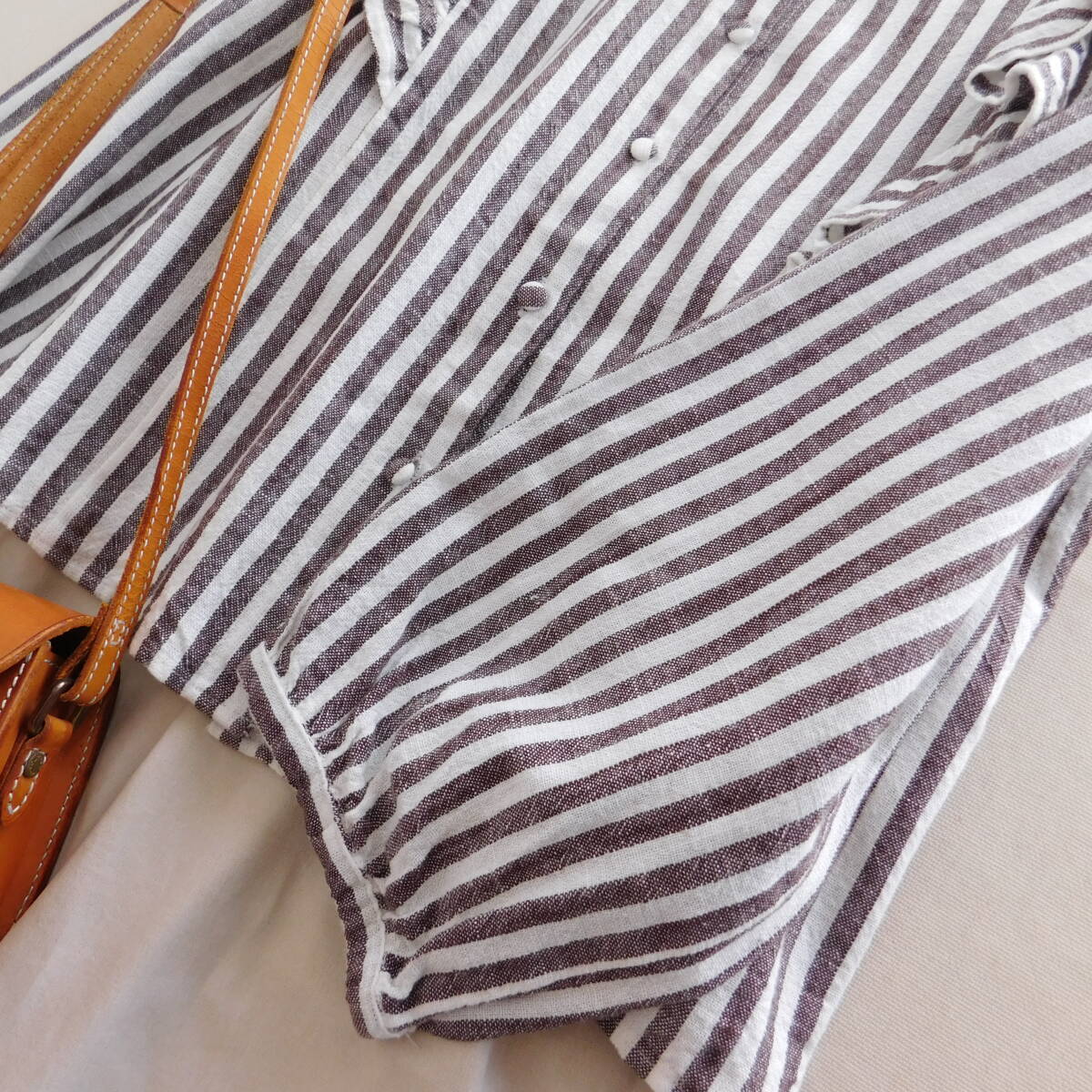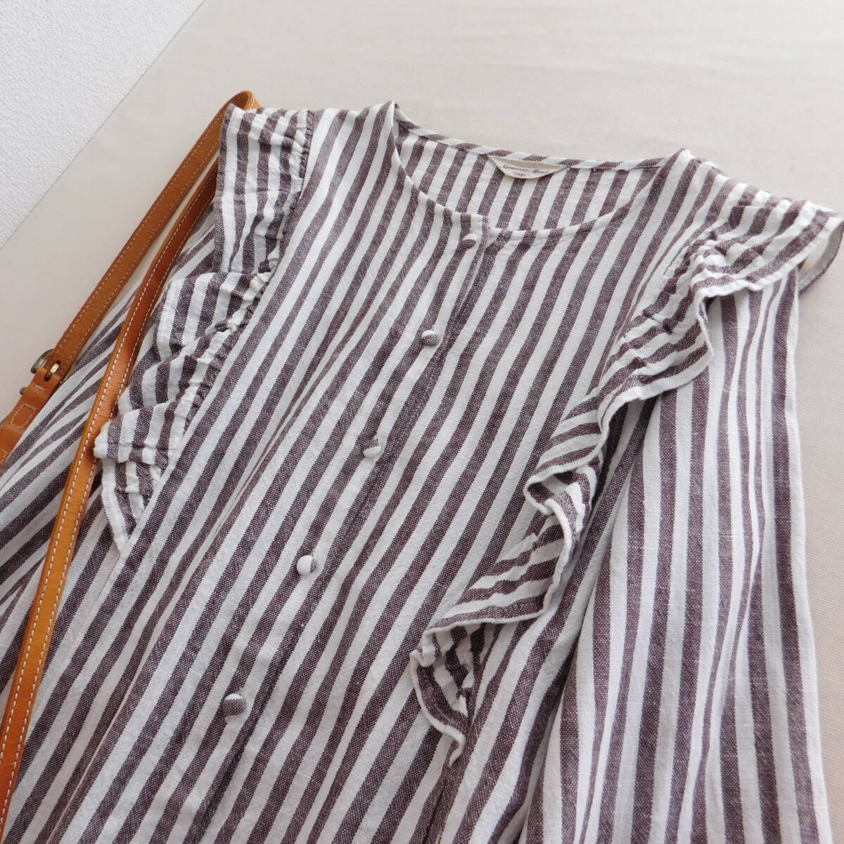 ココアカラーのストライプブラウスがかわいいです。
