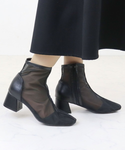 キーワード:ブーツ レディース ショート チャンキーヒール ヒール 紐なし 秋 冬