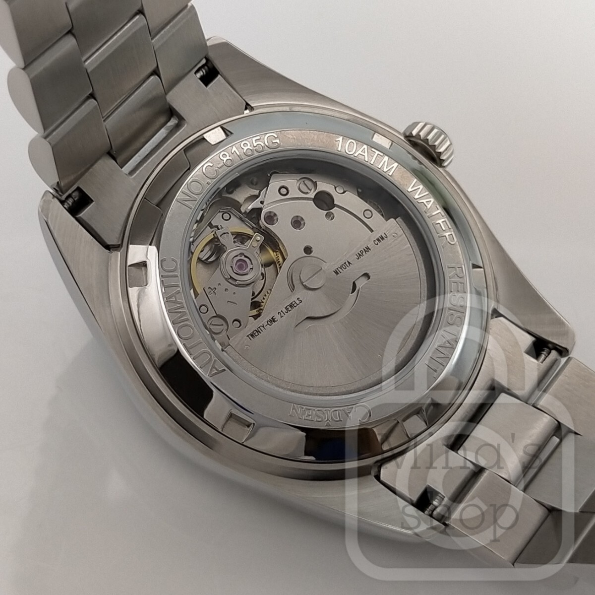 そして肝となるコアには国産ミヨタ製ムーブにより高精度と高耐久が期待でき、更にその挙動を裏スケで垣間見るることができます。