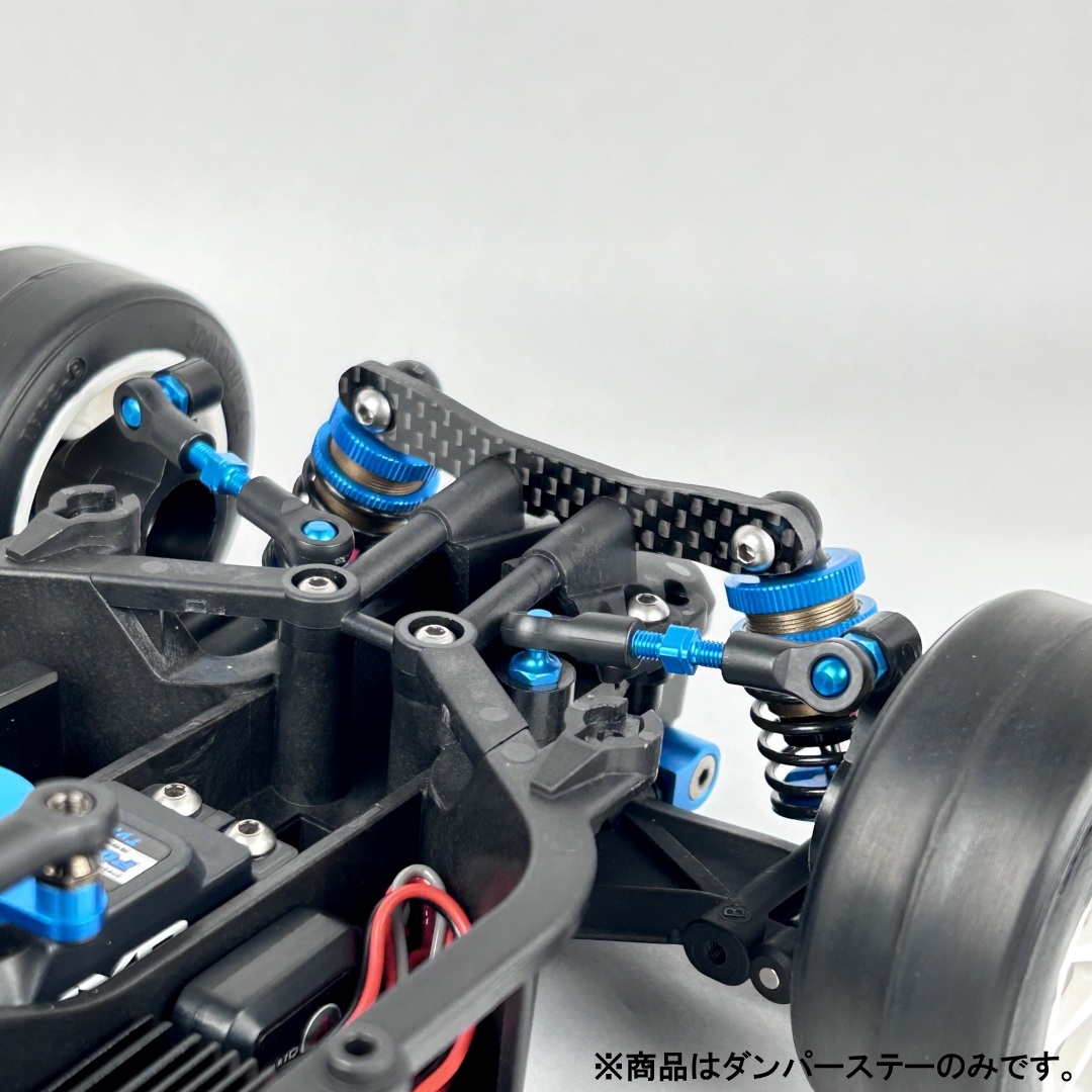 タミヤ M07にウルトラショートビッグボア(TRF-USBB)ダンパーを装着するための、カーボンダンパーステー(F・R)セットです。