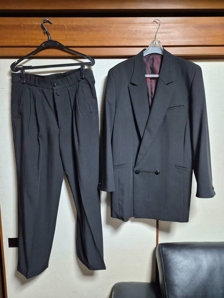 ★高級ブランド★美品★BBCO/ビビコ★Wスーツ(サイドベンツ)赤コレクション★48★黒無地