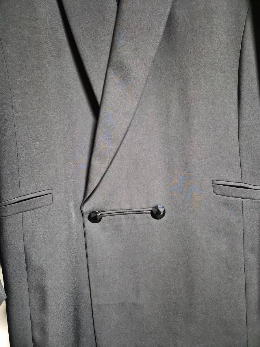 ★ブランド名BBCO/ビビコ ★品名 ダブルスーツ★サイズ 48実寸:上着肩幅45cm 袖丈64cm身幅52cm×2着丈襟下80cmサイドベンツ22cm  パンツウエスト補正して89cm(出し不可能) 渡り幅32cm 股下72cm(出し不可能) 裾幅23cm ダブルをシングル仕上★素人採寸ですので多少の誤差はご了承ください。★カラー黒無地★素材 表地ポリエステル90%ポリウレタン5%その他5%裏地キュプラ50%ポリエステル50%★コメント 、裏地は、赤コレクションで、大変お洒落です。激シブで、着心地は、もちろん完璧で高級感があり、オススメです。●商品状態 身内の代理出品になります。袖口釦は、内から、外に、付け替えてます。保管シワが御座います。全体的には、綺麗(個人的主観)な方だと思いますが、あくまでも、個人的主観なので、神経質な方は、ご遠慮下さい。保管に伴う多少の汚れや傷を見落とす事もあるかと思われます。ノークレーム、ノーリターンでお願いします。●発送方法は、元払いで、落札者様の地区によって、送料が異なりますので、追って、ご連絡致します。尚代引き発送は取り扱っておりません(注)オークション終了後、48時間以内にご連絡出来ない方のご入札は固くお断り致します!●追記:マイナス評価有りの方や新規のIDの方で、ご入札の場合こちらから取り消す事があります事をご了承下さい。●購入意思が無い方のイタズラ入札は固くお断り致します。