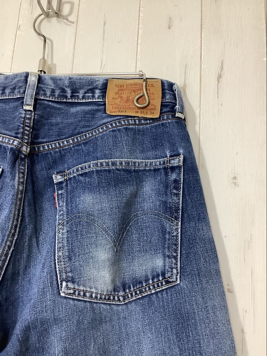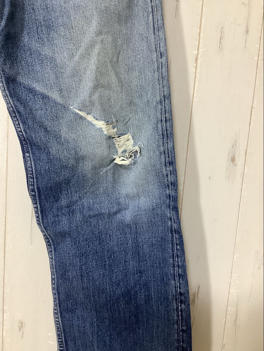 右太腿縫い合わせ付近にて生地擦れがございます。