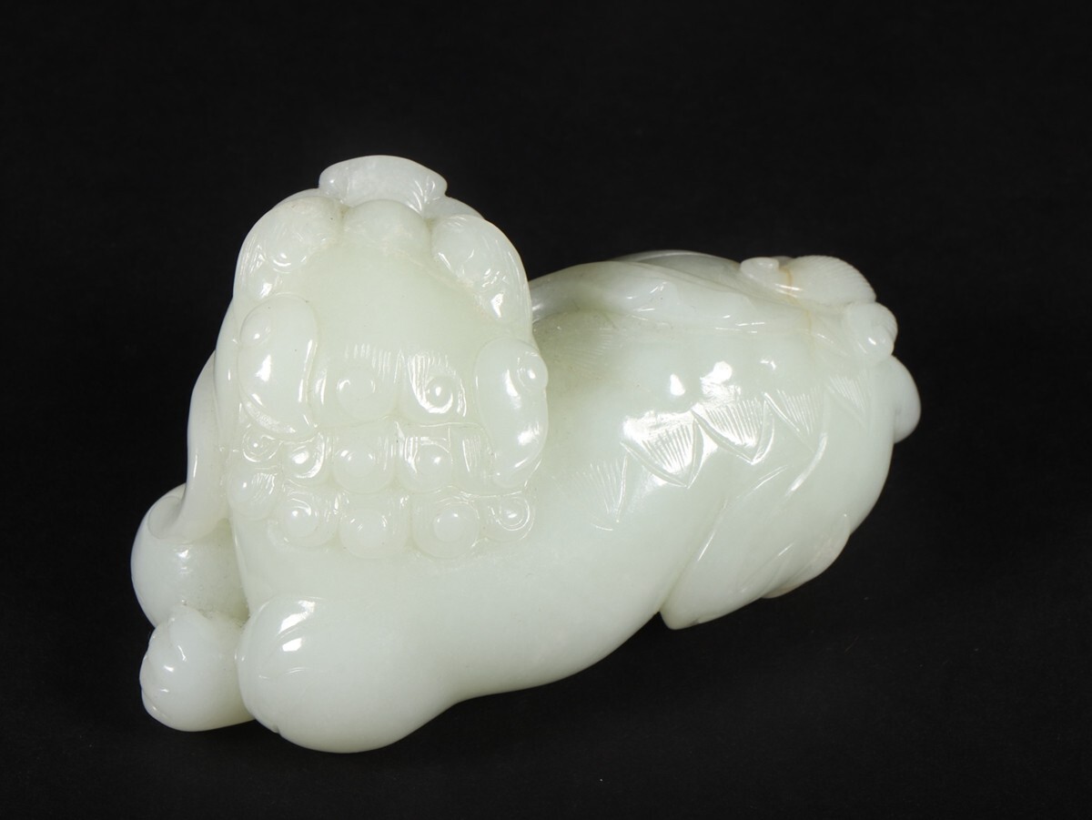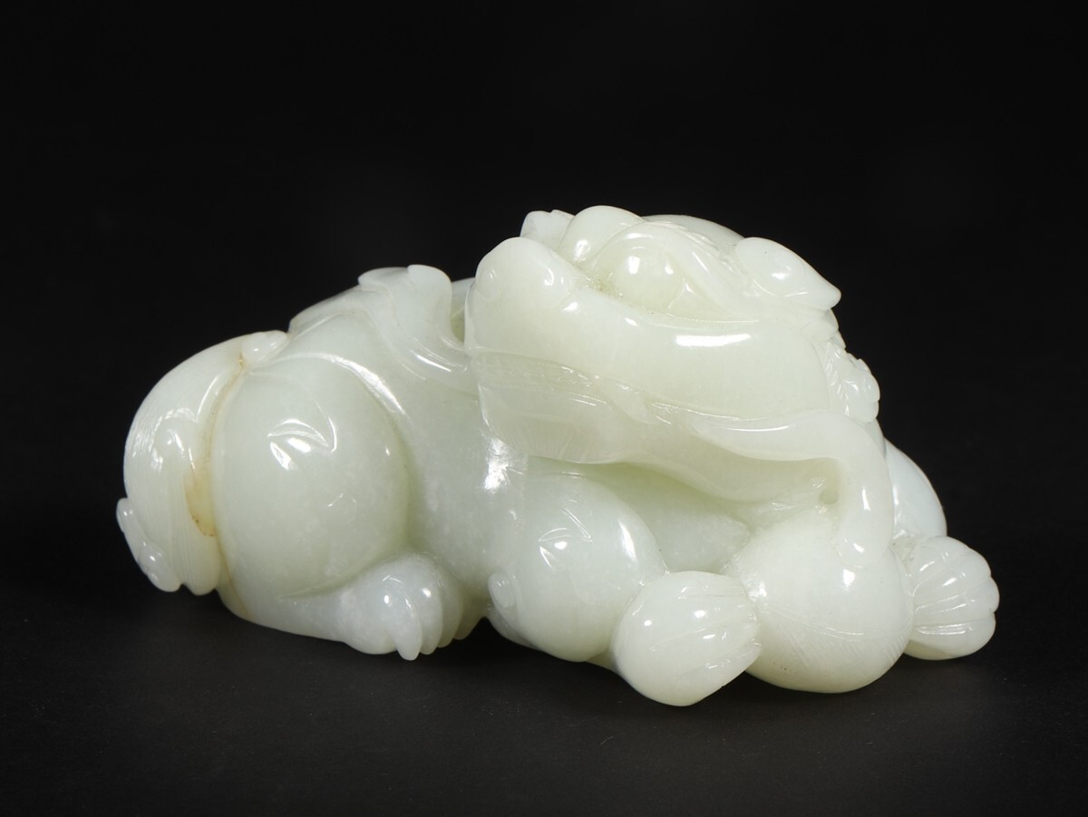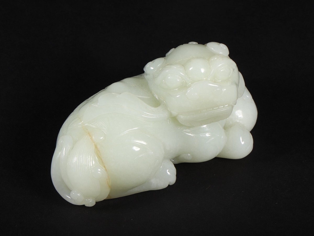 「清時代 和田玉 白玉彫り 瑞獅戲球」極細工 擺件 中国古賞物 古美術 旧蔵出