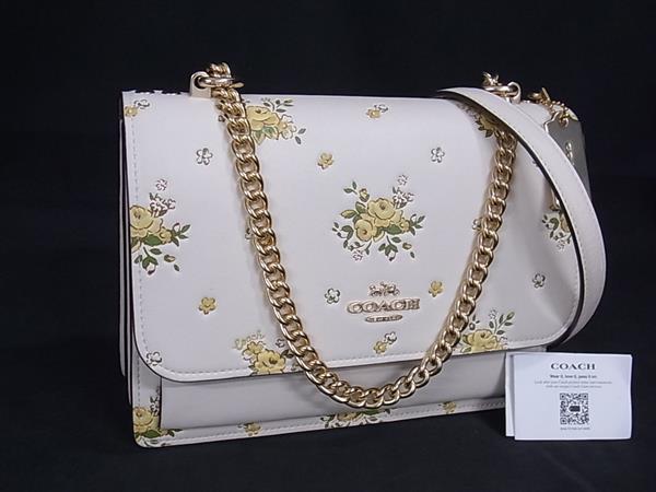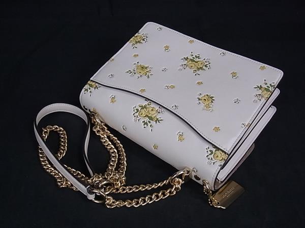1円 ■美品■ COACH コーチ CAL39 クレア レザー チェーン 花 フラワー クロスボディ ショルダーバッグ 斜め掛け アイボリー系 FP5643