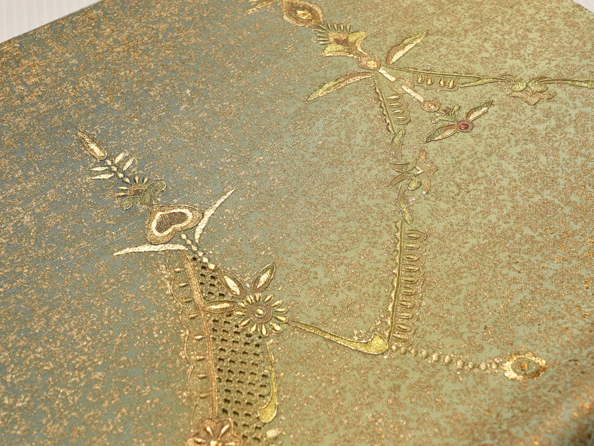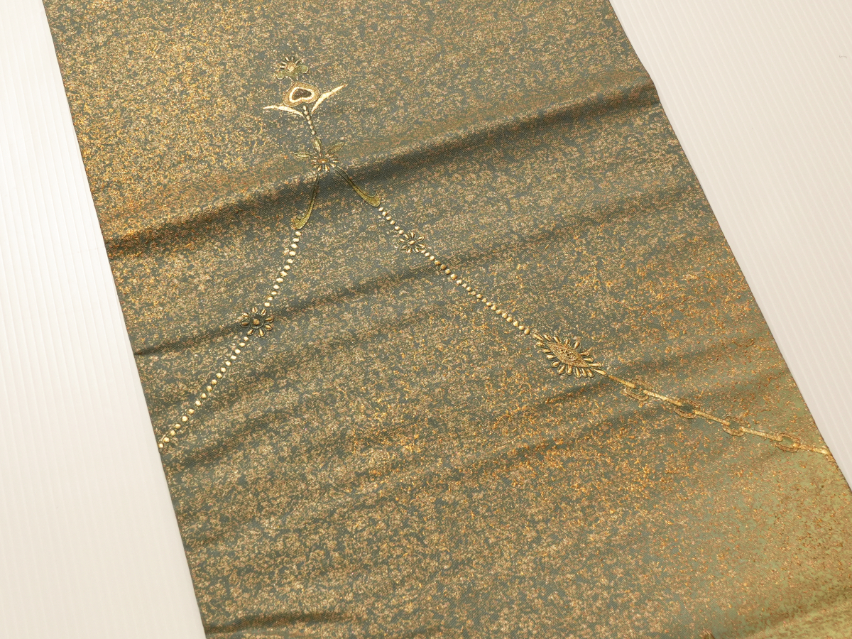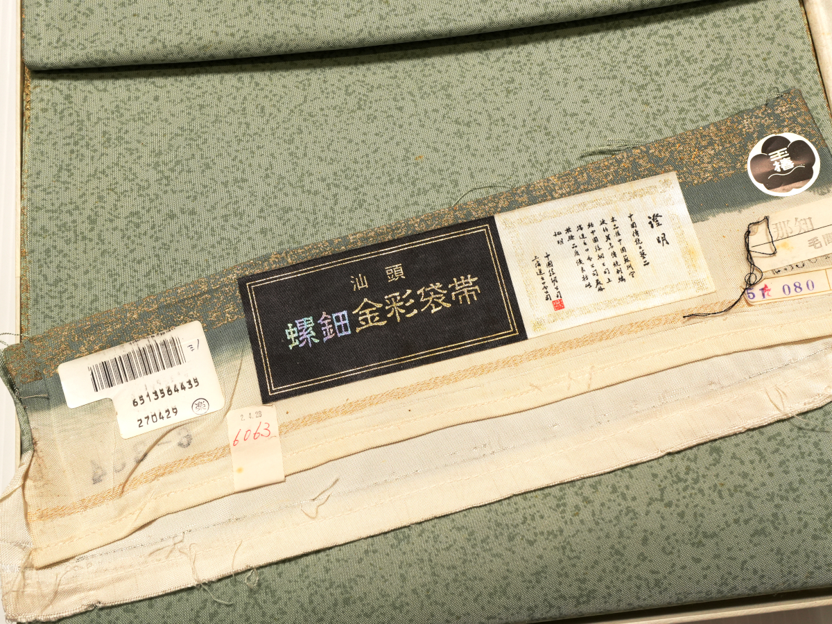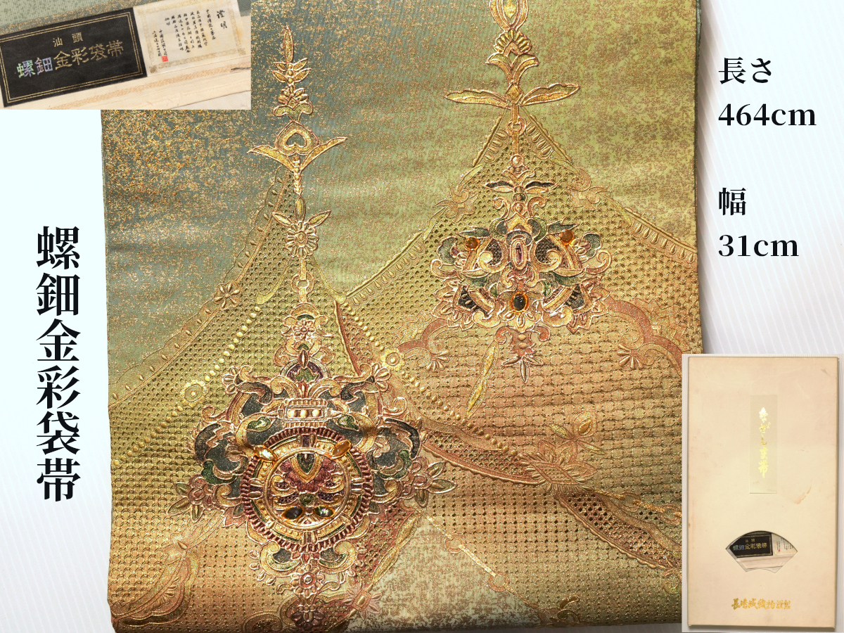 H353 良品! 螺鈿金彩 袋帯 ながしま帯 長嶋成織物謹製 着物帯 和装 高級和服 正絹 箱付 長さ約464cm 幅約31cm 中古 古着