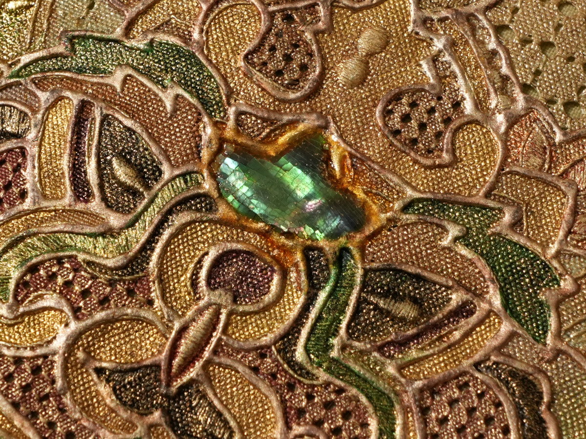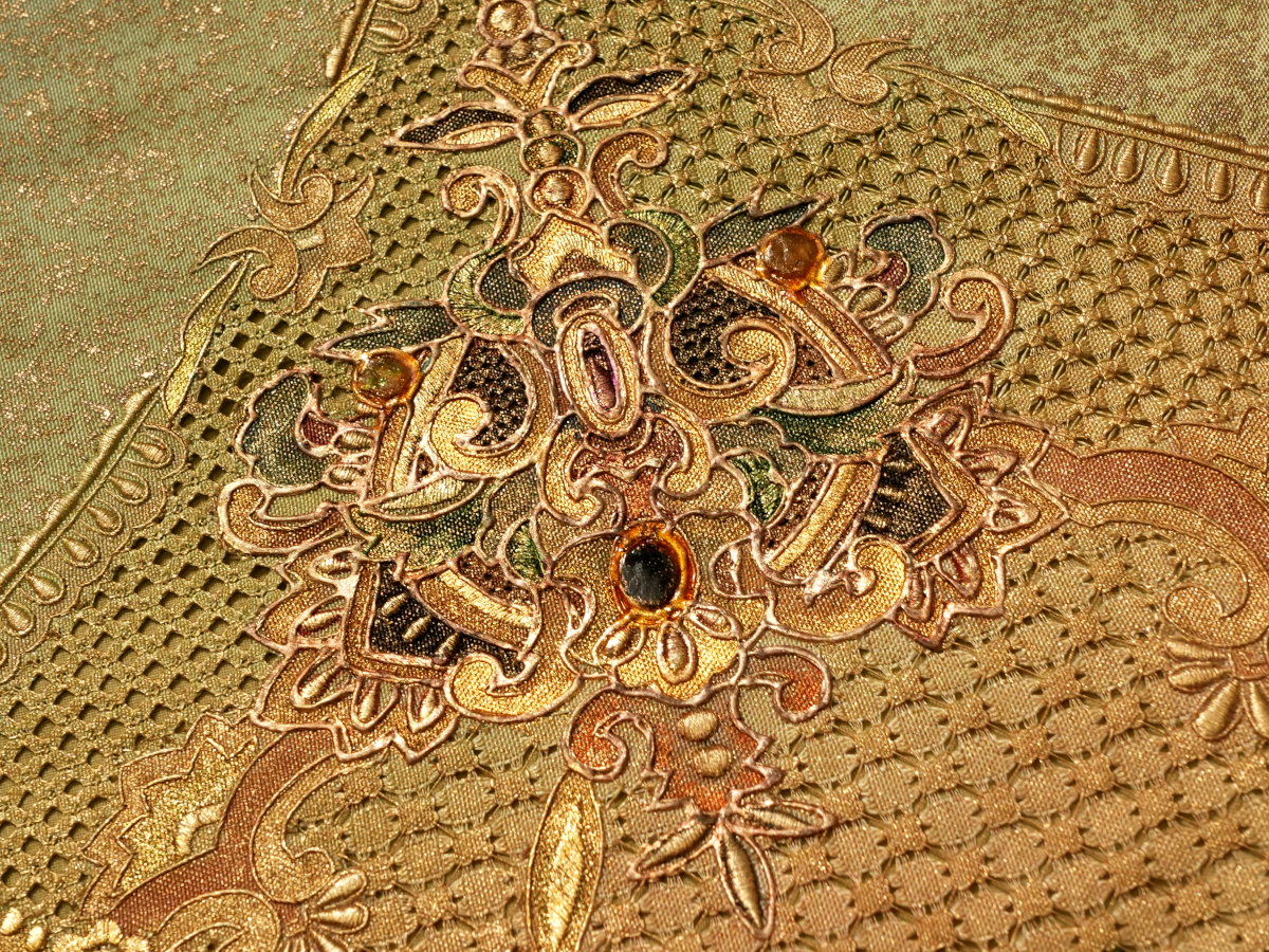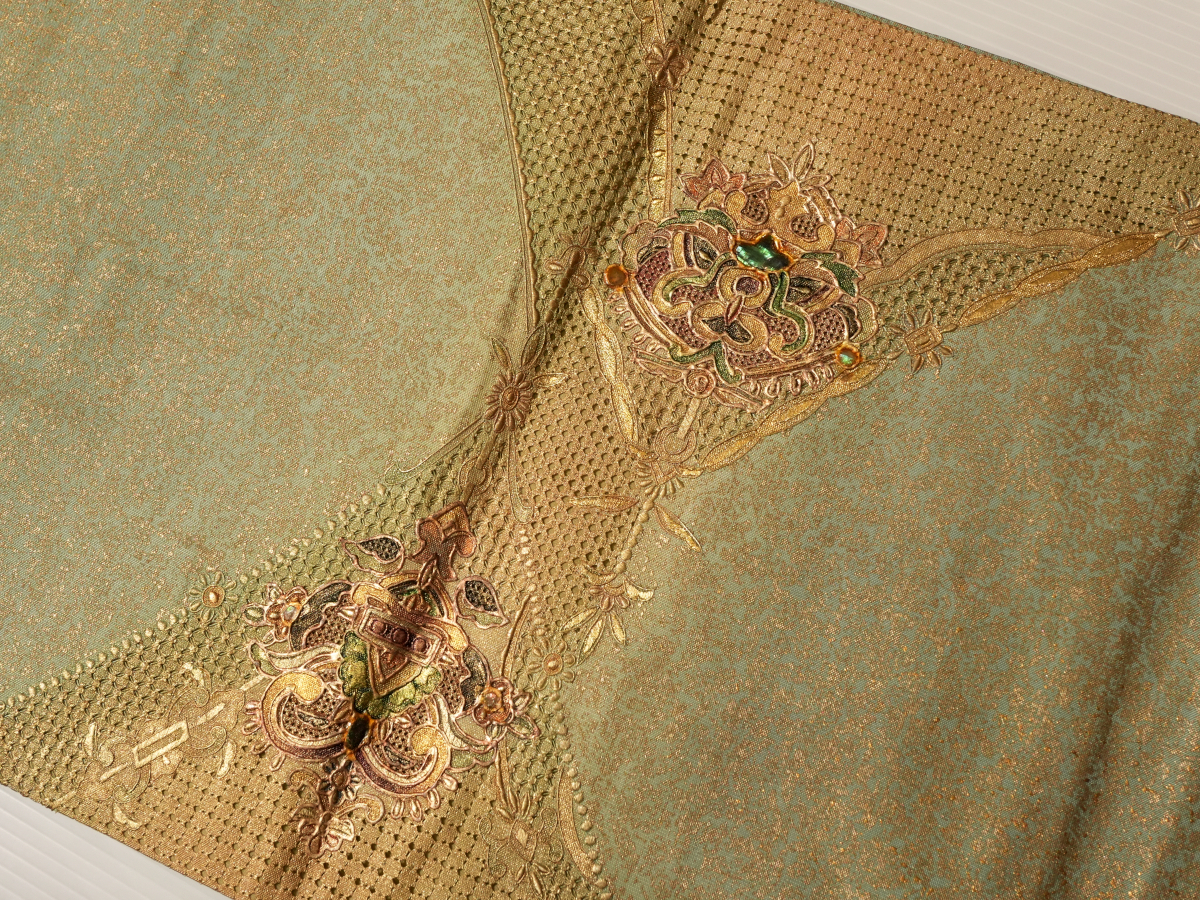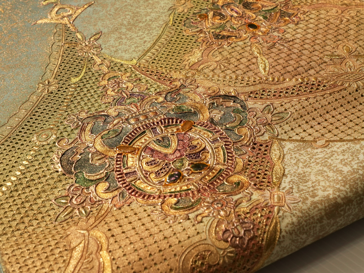 H353 良品! 螺鈿金彩 袋帯 ながしま帯 長嶋成織物謹製 着物帯 和装 高級和服 正絹 箱付 長さ約464cm 幅約31cm 中古 古着