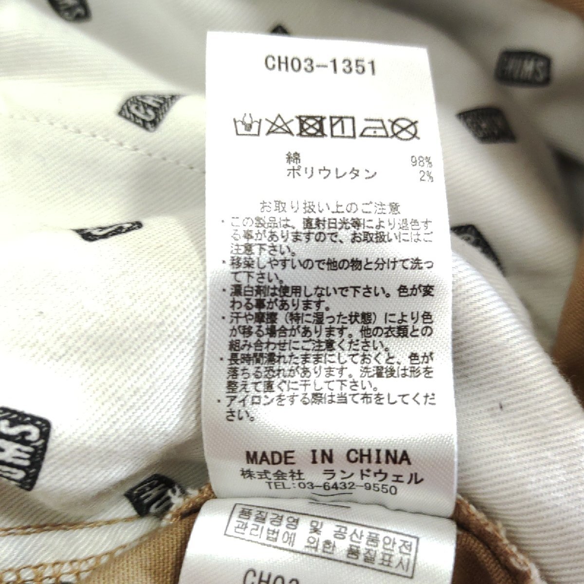 《CHUMS チャムス》ジッパーフライ/綿98%・ポリウレタン2%
