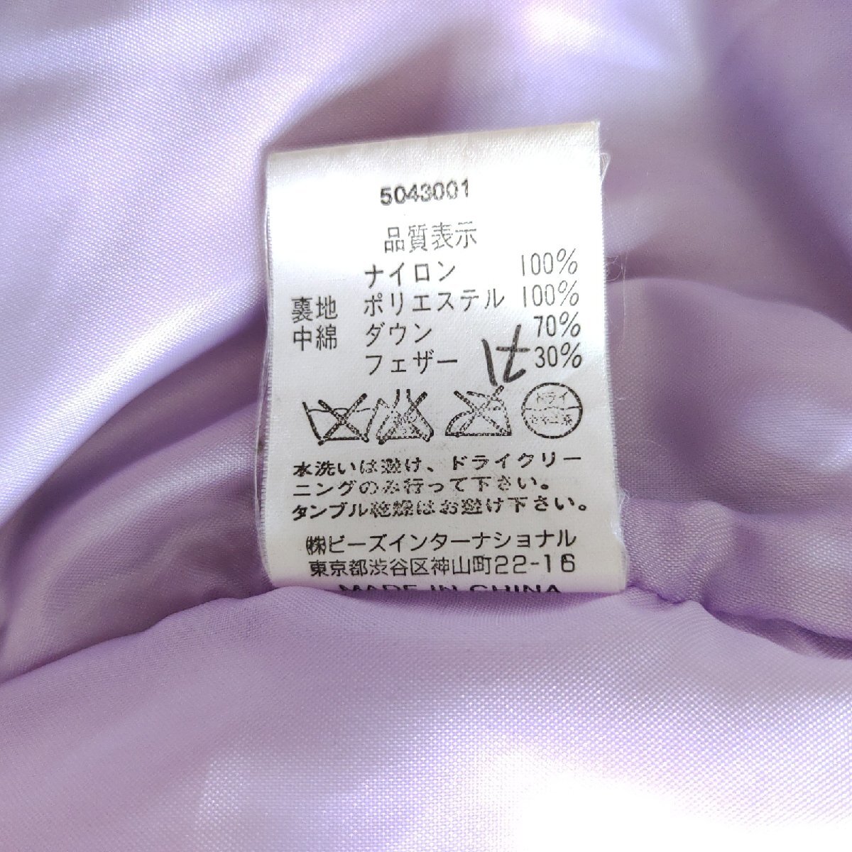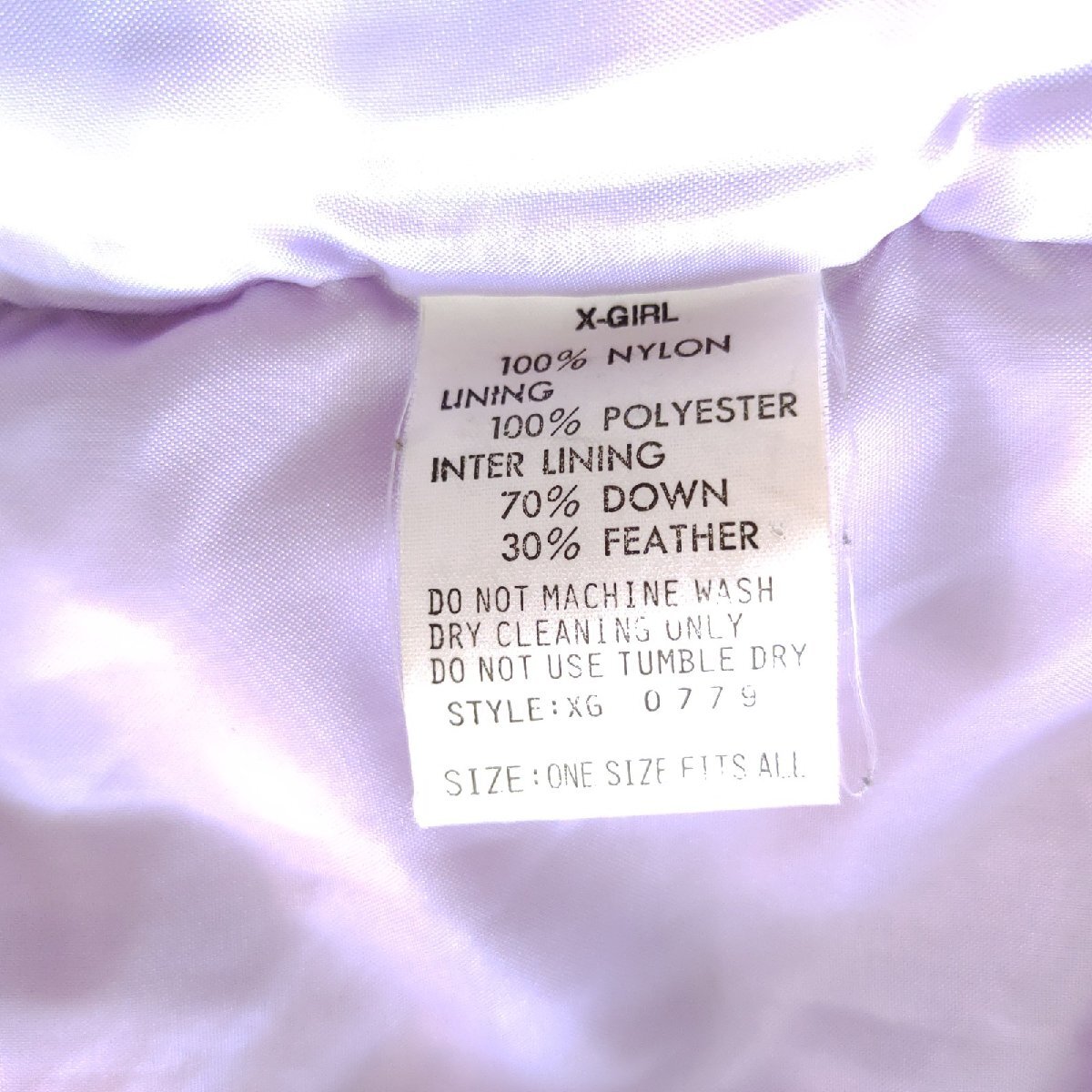 《X-girl エックスガール》表地:ナイロン100%/裏地:ポリエステル100%/ダウン70%・フェザー30%
