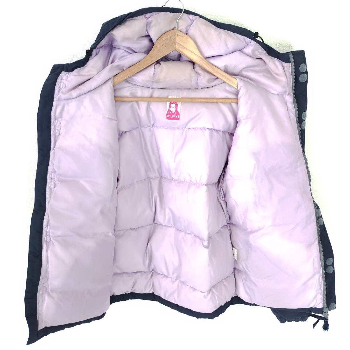 (^w^)b X-girl エックスガール 長袖 ナイロン ダウン ジャケット パーカー ジャンパー ブルゾン アウター 防寒着 アウトドア 紺 O15553DD
