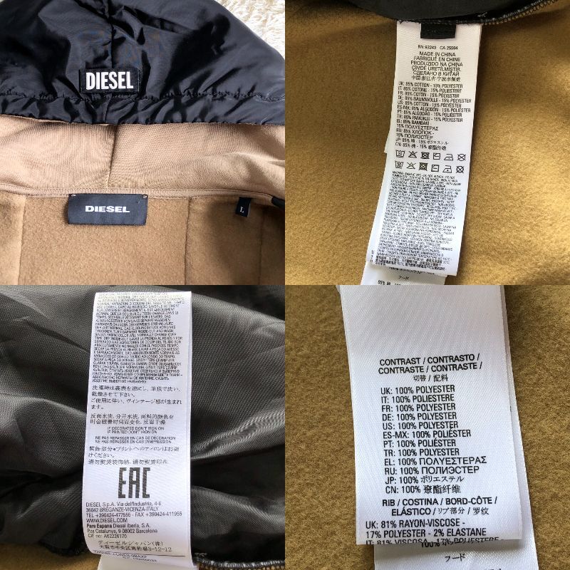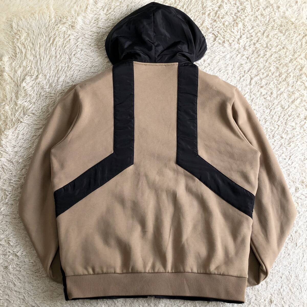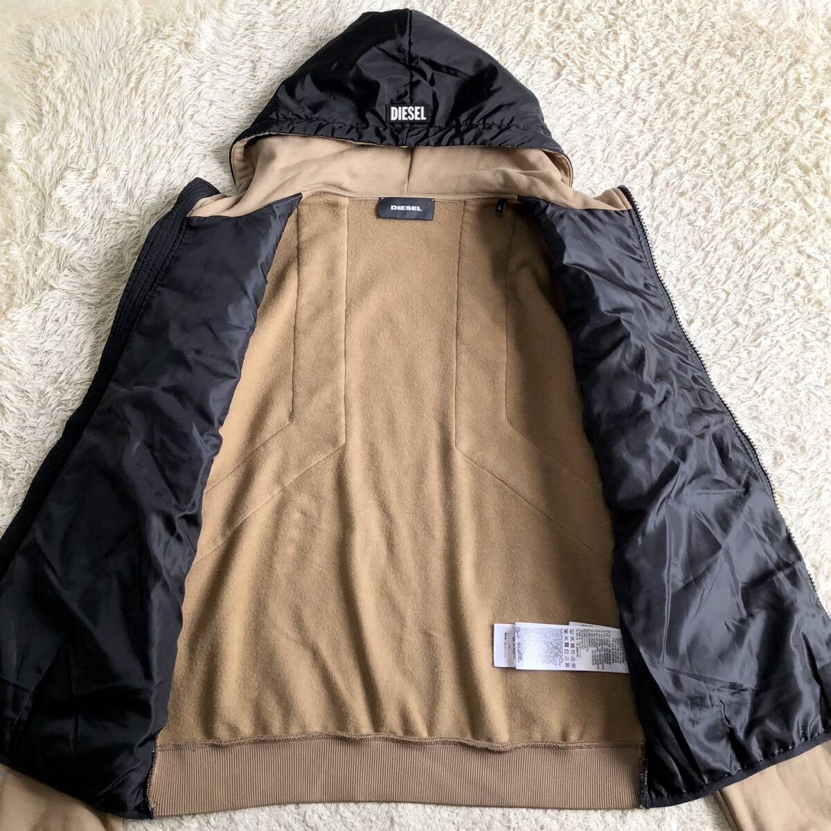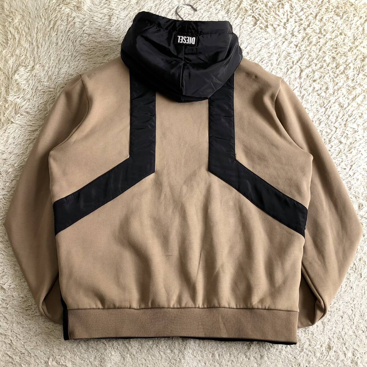 美品/XL相当●ディーゼル DIESEL キルティング 切替 裏起毛 フードロゴ コンビパーカー ジャケット ブルゾン フーディー ジップ メンズ