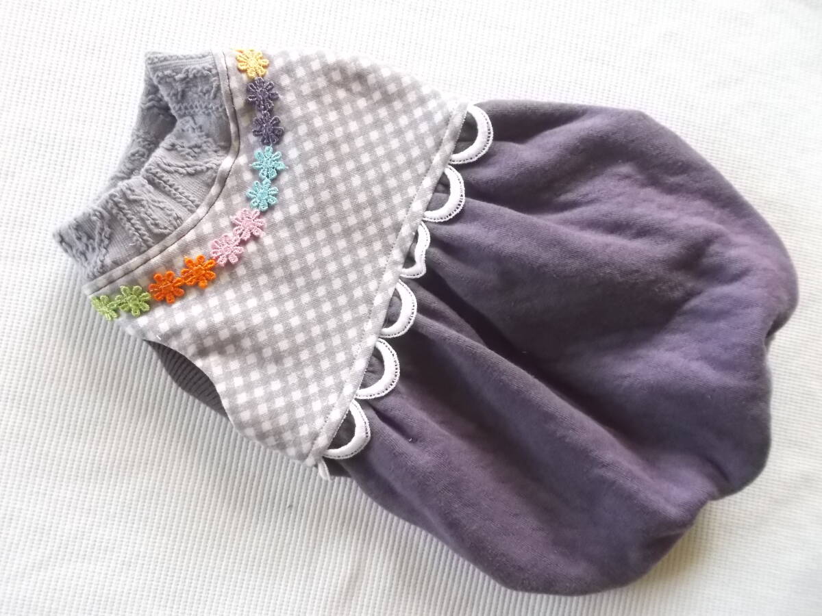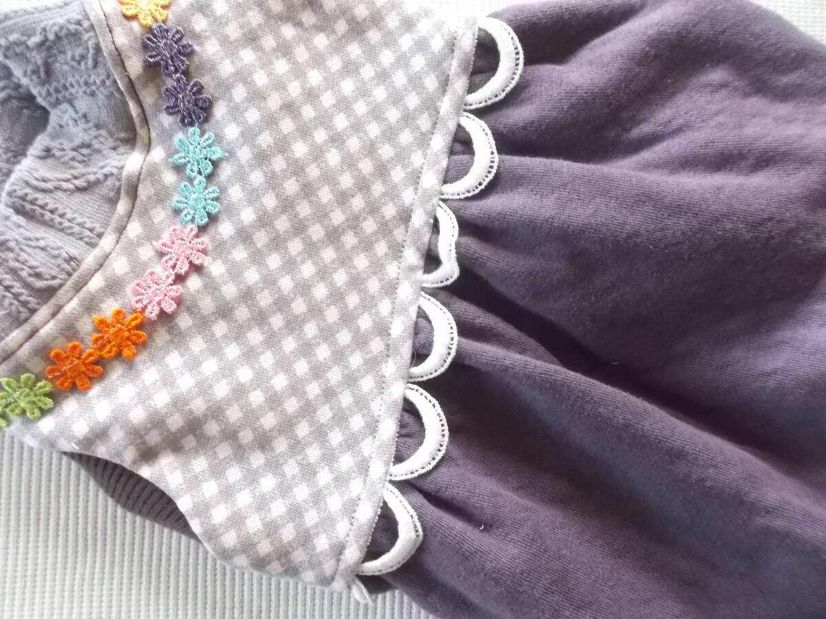 ★胴34cm★パープルチェック・紫のバルーン風ワンピース