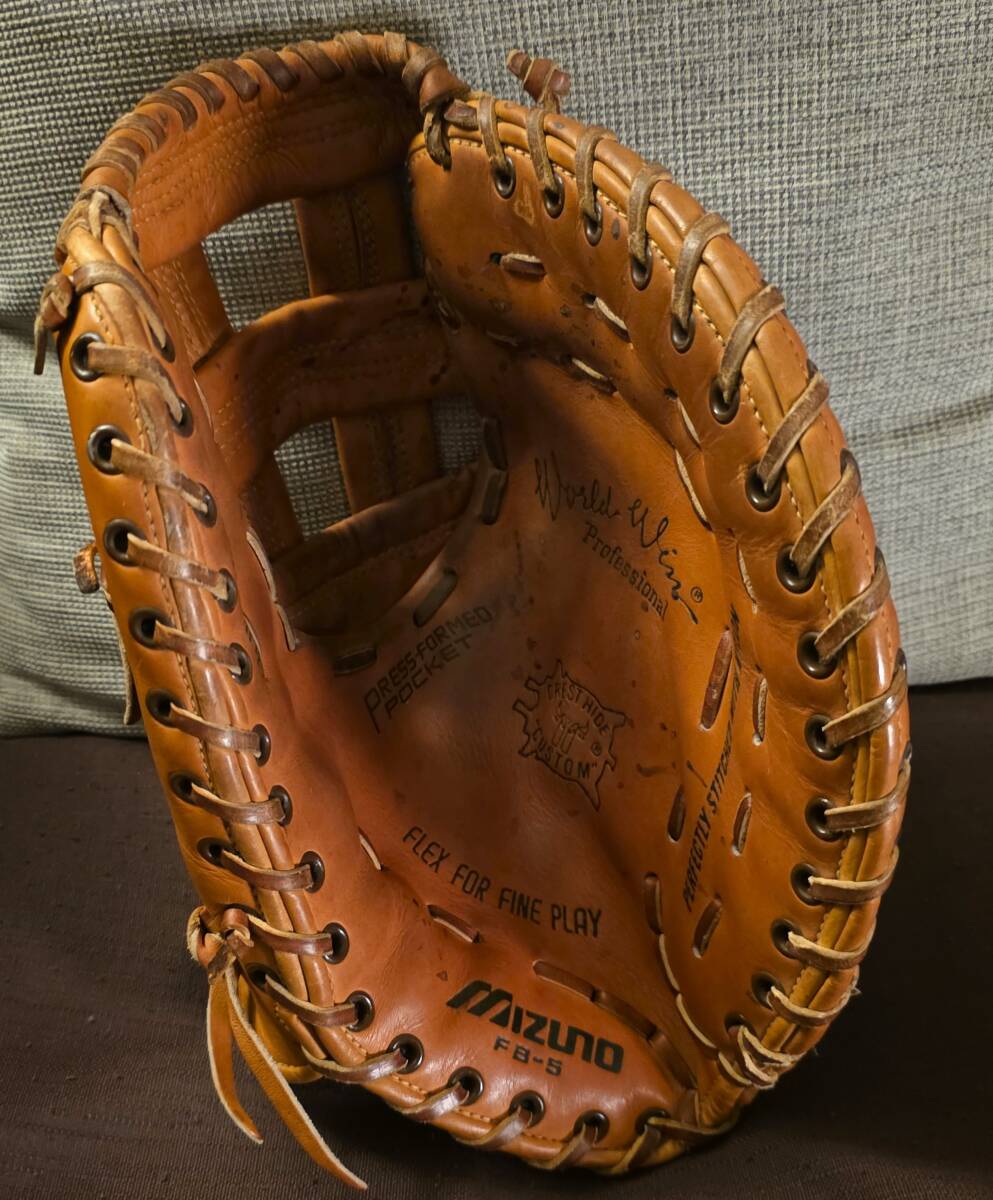 今では大変貴重な80年前半頃のミズノの硬式用ヴィンテージのファーストミットです。