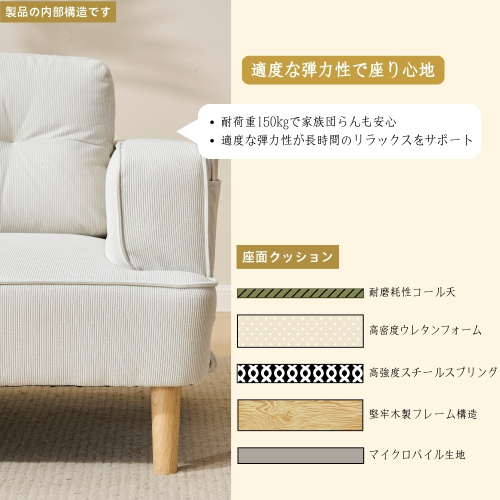 • 【追加の快適サポート】同色のクッションが付属しており、ソファとのコーディネートが完璧です。クッションは腰部をしっかりサポートし、さらに快適さを向上させることで、リラックスした時間をより一層楽しむことができます。
