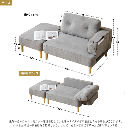 • 【多機能な組み合わせ】このソファは5つの異なる組み合わせ形態を提供し、ソファ本体とオットマンの位置を調整することで、さまざまなシーンに対応します。家庭での集まりやリラックスしたひとときなど、さまざまなニーズに応えます。