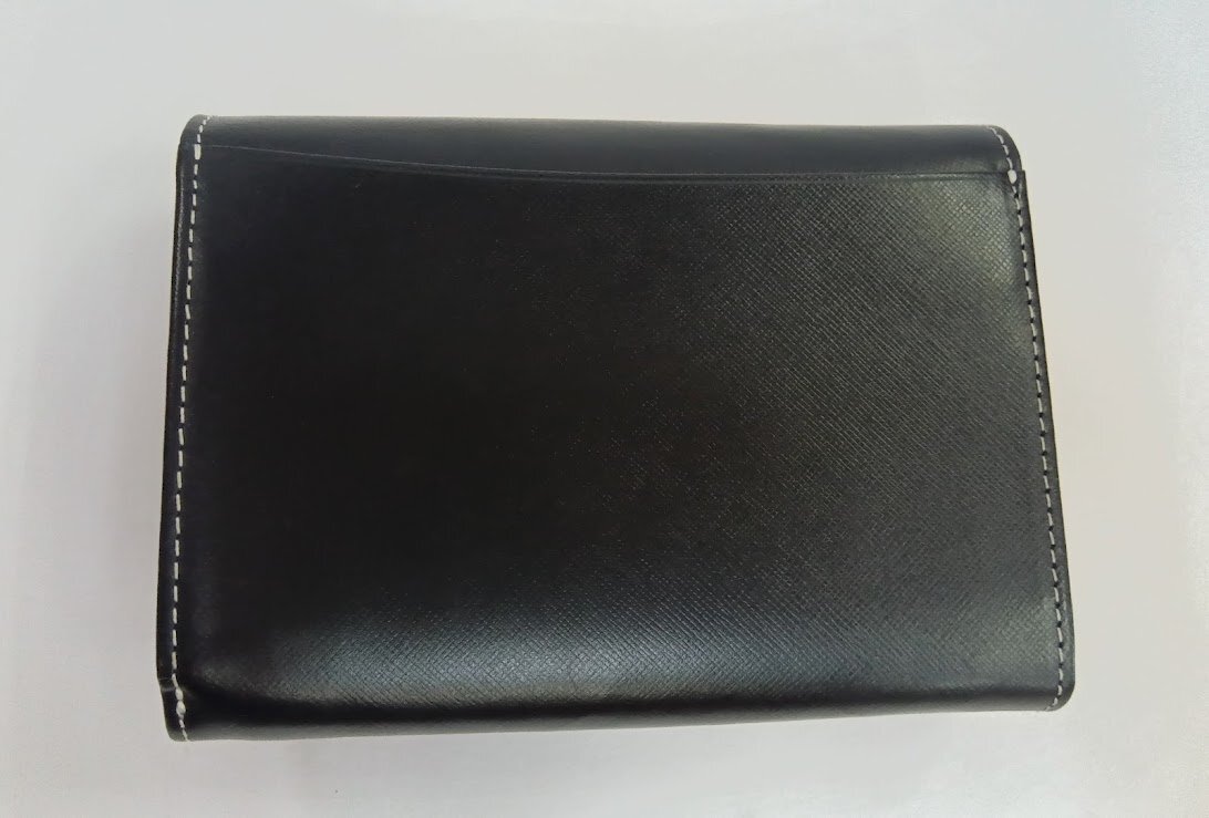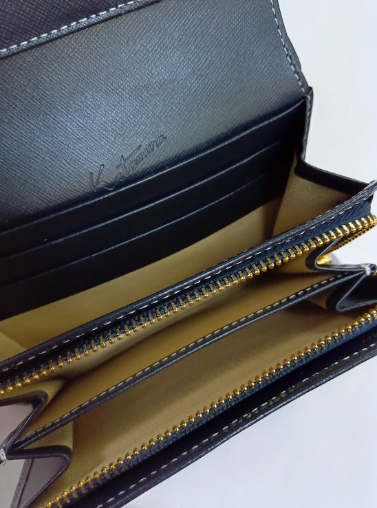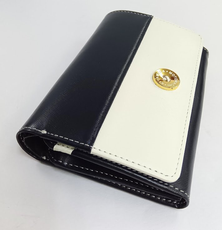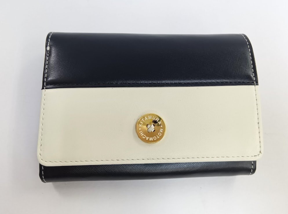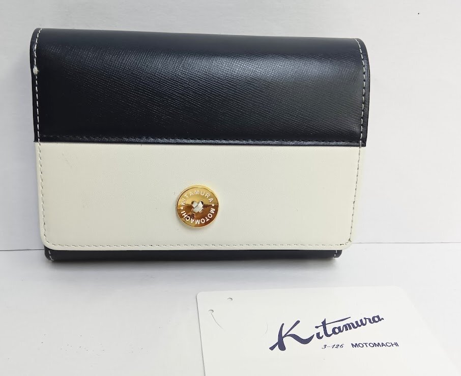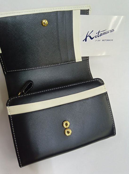 Kitamura/キタムラ☆レザー・二折財布 ダークブルー/ホワイト  牛革 バイカラー ロゴボタン 美品 箱無し【未使用】Y250827001