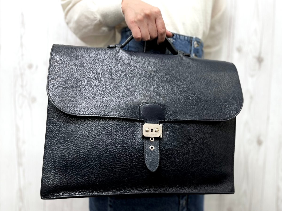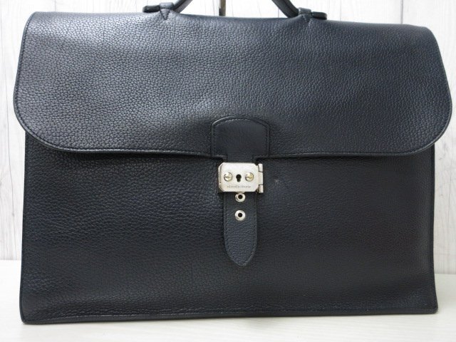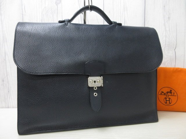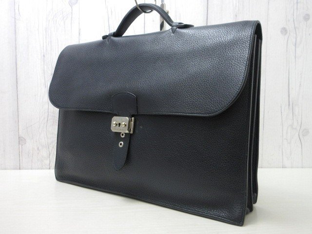 | 美品 HERMES エルメス サックアデペッシュ ビジネスバッグ ハンドバッグ バッグ レザー 紺 A4収納可 メンズ 90115 | ||