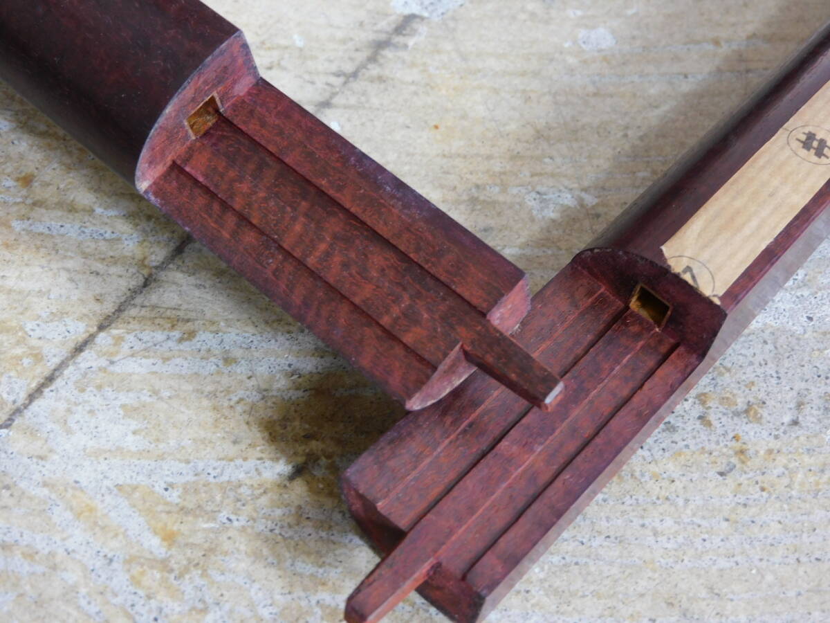 三味線 細棹 紅木 トチ 金細 二本溝 子持ち綾杉胴