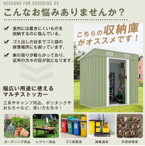 • 【大容量でしっかり収納】たっぷり収納でき、ガーデニングの道具入れなど使い方は様々収納力抜群庭や室内で場所を取る物品をしっかり片付けることができます。スペースが無駄なく使え、庭にはすっきり!