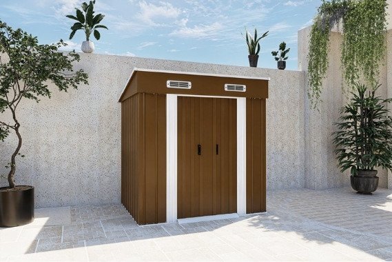 【TYPE A ブラウン】物置 屋外 大型 倉庫 大型物置 戸外収納庫 物置 防水/耐侯/庭/田畑/農場 頑丈 スチール 補強フレーム付き 換気口付き