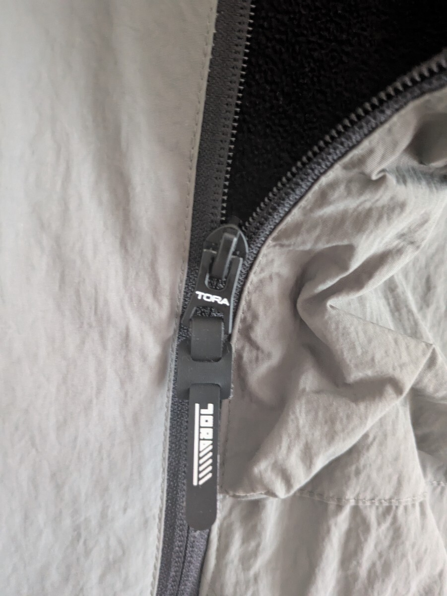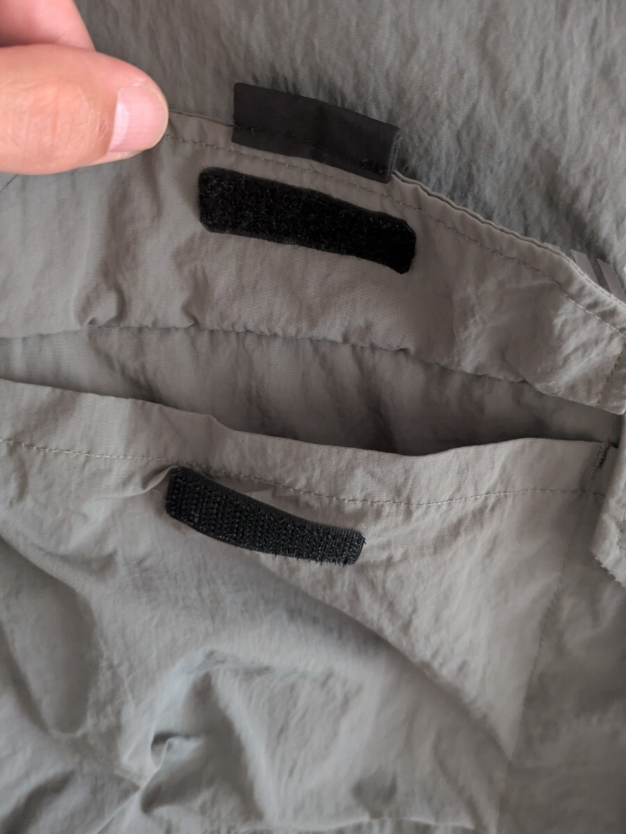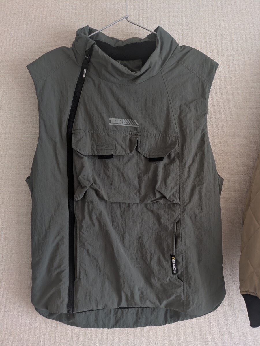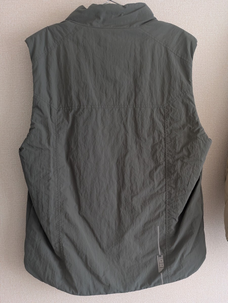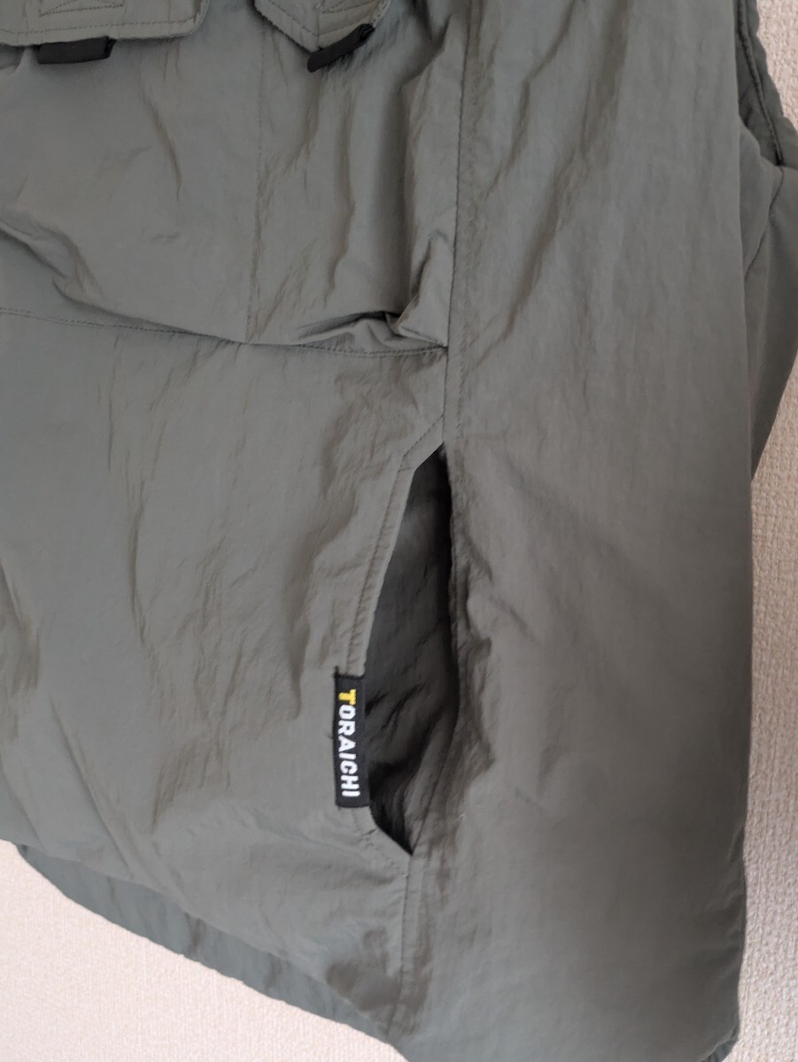 シャカシャカ感のあるナイロンにフリース裏地を使用したしっかりとした作りのベストです。