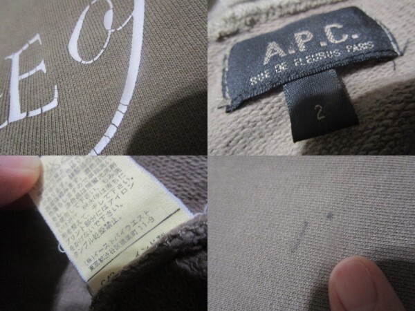 『送料レターパックライト円対応可能    A.P.C.     プルオーバースウェットフーディ    メンズ2    モカブラウン系』