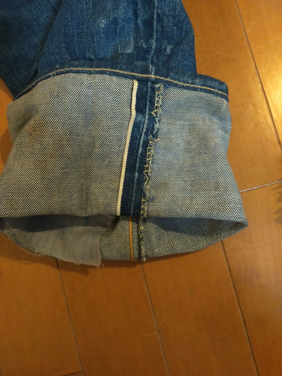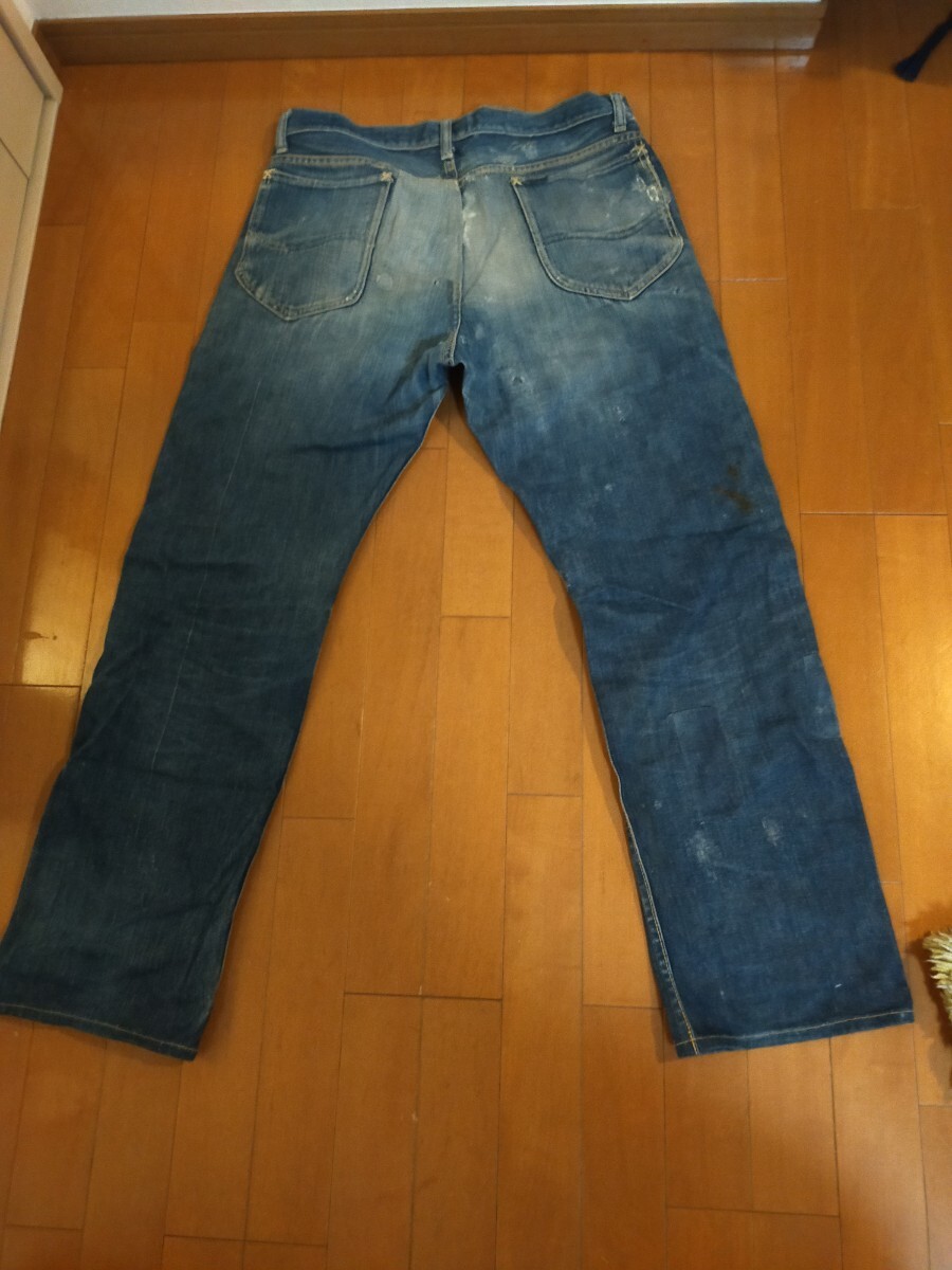 実寸でW33 L29程度とサイズバランスも文句なしかと思います。オリジナルレングスではありませんが、膝下の色残りは主観で7割程度ですのでセンター黒をお探の方は是非この機会にご検討ください。