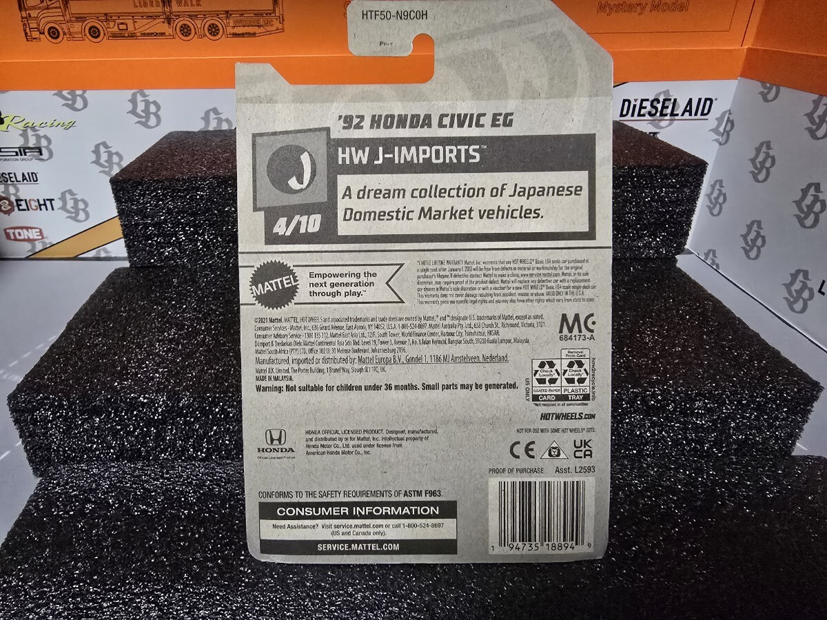 商品名 :Walmart限定 ホットウィール ザマック HOT WHEELS ’92 HONDA CIVIC EG ZAMAC (未開封、現状渡し)