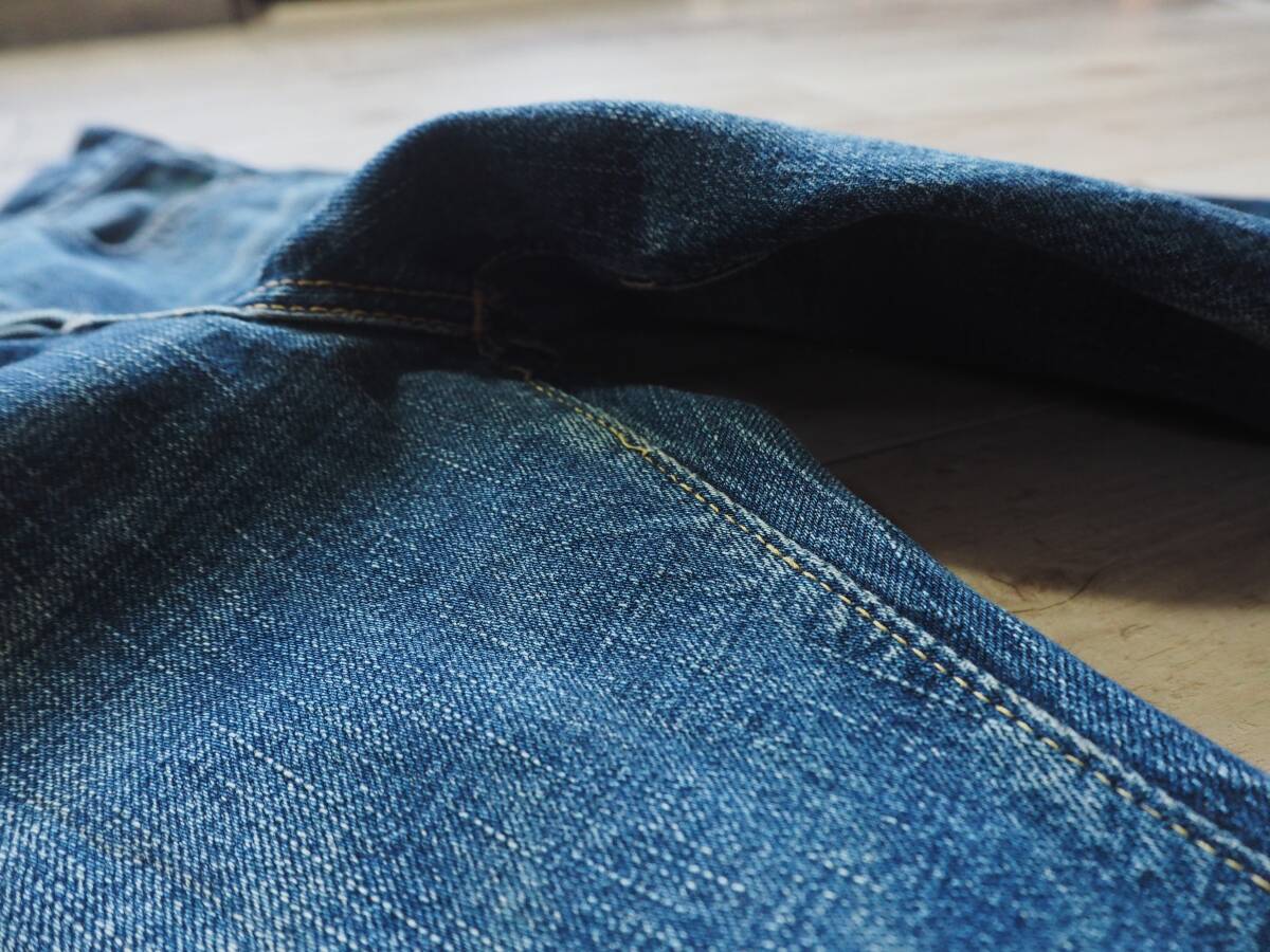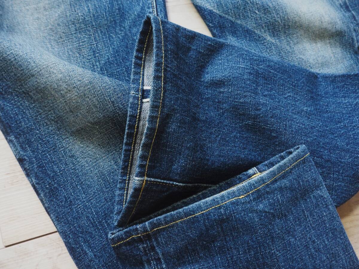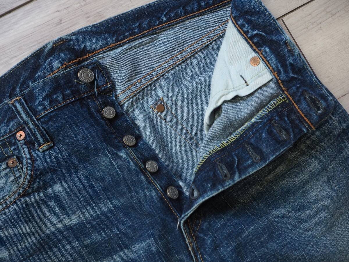 こちらはフルカウント/FULLCOUNT Lot.1101 STRAIGHT 定番モデルです。 フルカウントの定番ジーンズの中でもプレーンなストレートライン。1950年代以前の501xxを基本シルエットに着用際の秀逸なバックスタイルが特徴的です。 生地は極上の履き心地を体験できる高級な超長綿(ジンバブエコットン)を時間をかけて甘く織り上げ、ふんわりと馴染む様な伸縮性を持ちます。 フルカウント/FULLCOUNT Lot.1101 STRAIGHT 旧モデル アーキュエットステッチ 赤タブ付 size W34と思います。実寸参考にお願い致します。 素材 100% COTTON 13.7ozジンバブエコットン、ゴートレザーパッチ、中盛ベルトループ、裾チェーンステッチ。 MADE IN JAPAN 実寸 ウエスト 42.5cm x 2 85cm 丈 101cm 股上 前29cm 後36cm 股下 76cm 裾幅 21cm コンディション 当時のウォッシュ加工モデル。縦落ちはじめとしたインディゴの濃淡具合はヴィンテージを彷彿とされる風合いです。 裾の上げ具合も違和感がありません。 後部にお洗濯で残った古い汚れ跡こそありますがアジ感覚で着用して頂ける程度です。 宜しくお願い致します。 | ||||