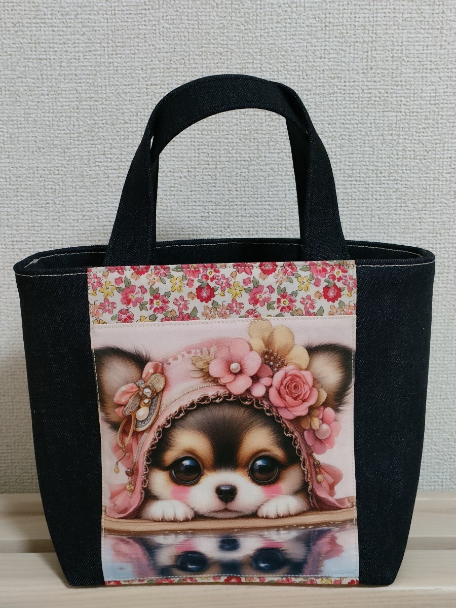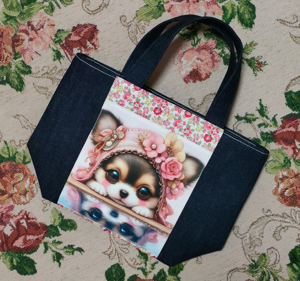 まん丸おめめで、ふせが可愛いチワワのミニトートバッグはいかがでしょうか♪