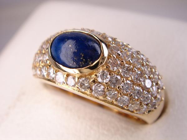★新品・送料無料★18金ラピスラズリー横置きリング★