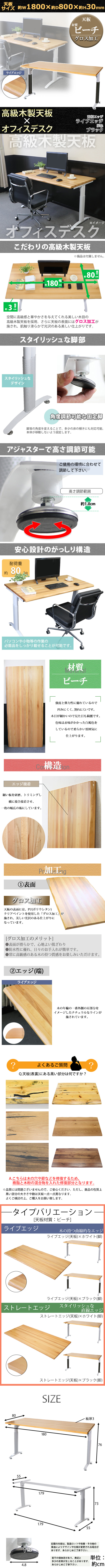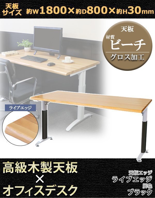 | 商品名 | 送料無料 オフィスデスク デスク 約W180×約D80×約H76 約W1800×約D800×約H760 ビーチ材 高級 木製 天板 グロス加工 耐荷重約80kg(脚部) 平机 ワークデスク 事務机 パソコンデスク PCデスク 事務デスク オフィステーブル オフィス家具 会社 事務所 会議用 ライブエッジ 脚色 ブラック t016180beechg |