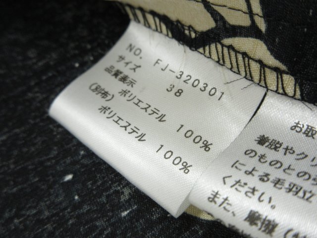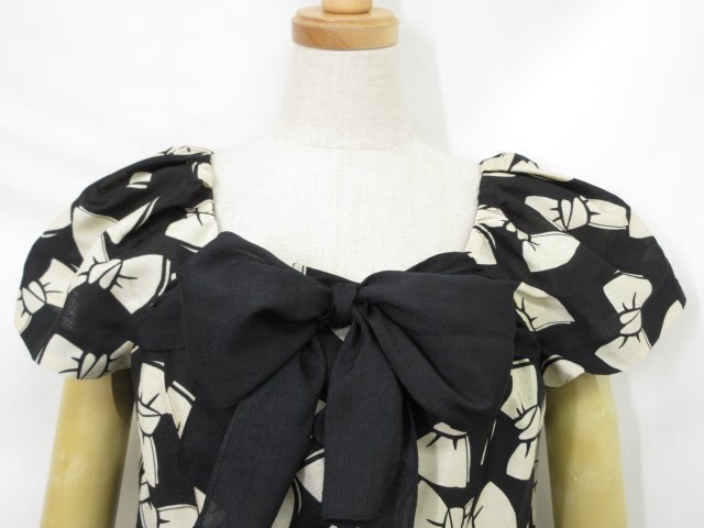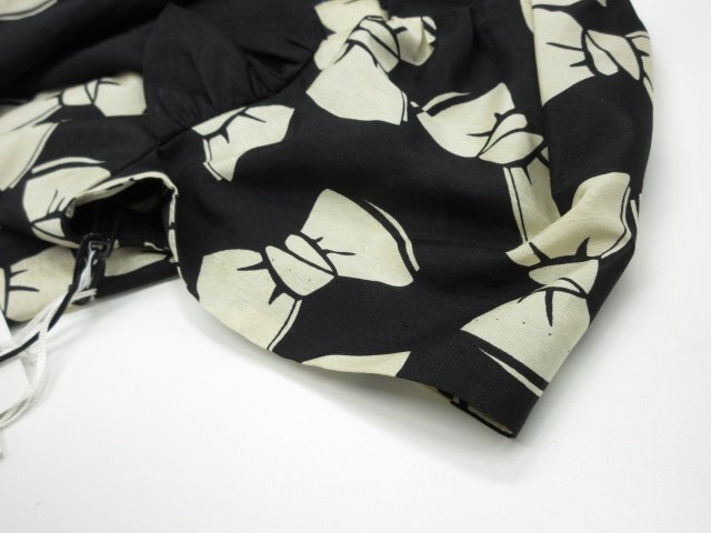 訳あり未使用【M'S GRACY エムズグレイシー】FJ-320301 リボン柄 半袖ブラウス (レディース) size38 ベージュ系×ブラック ◇17LK2517◇