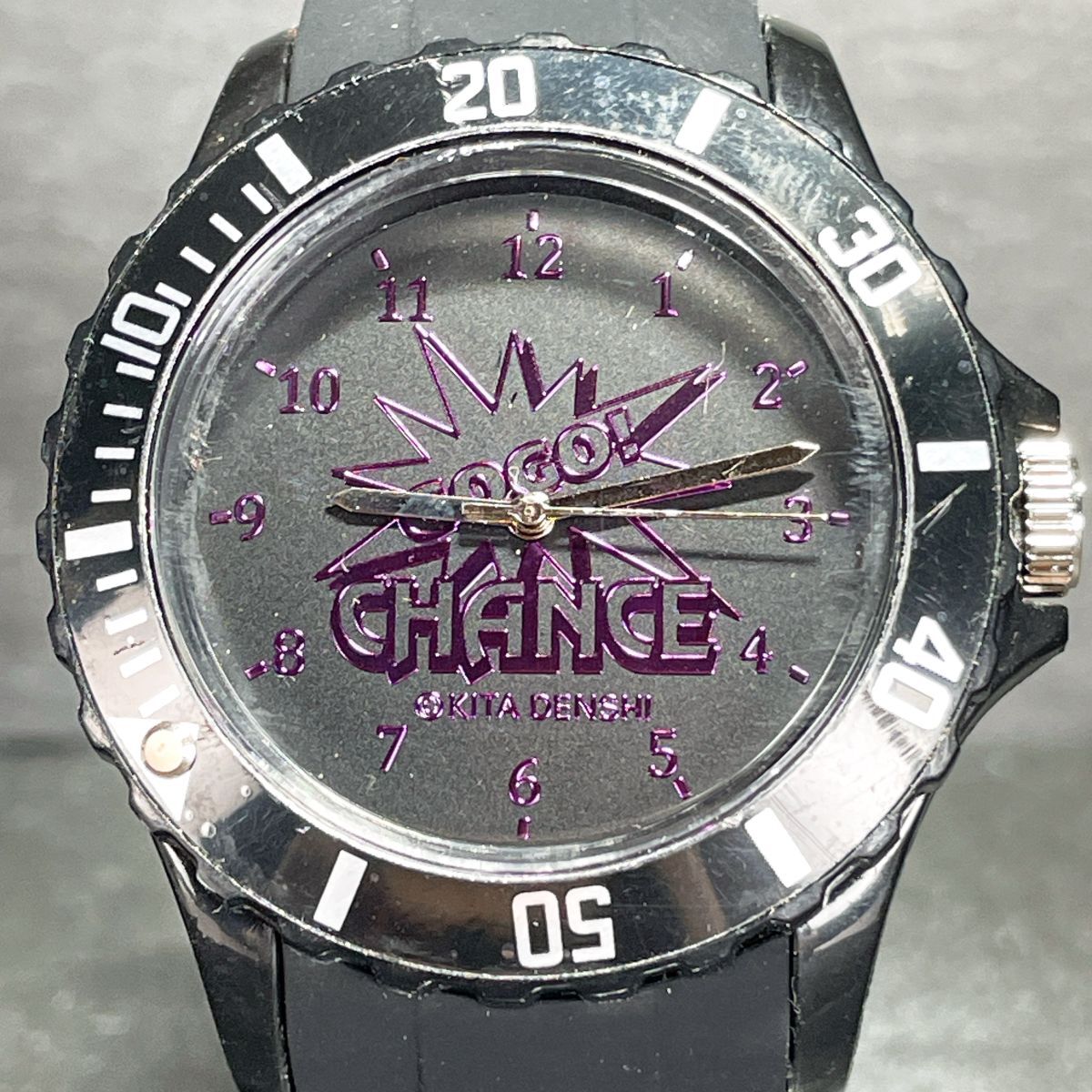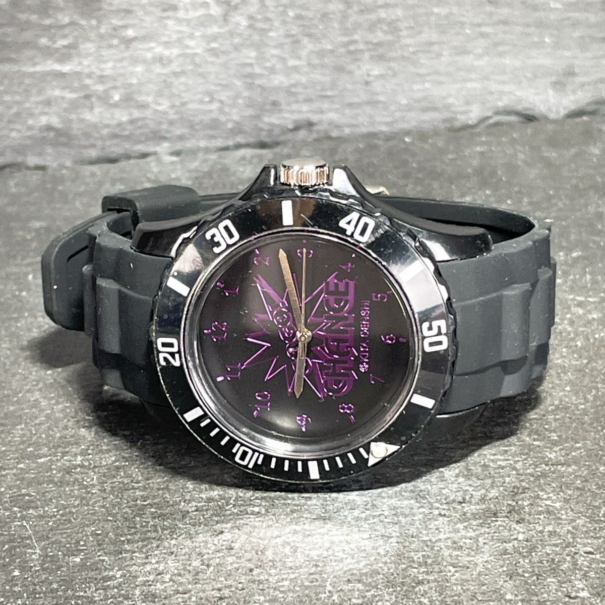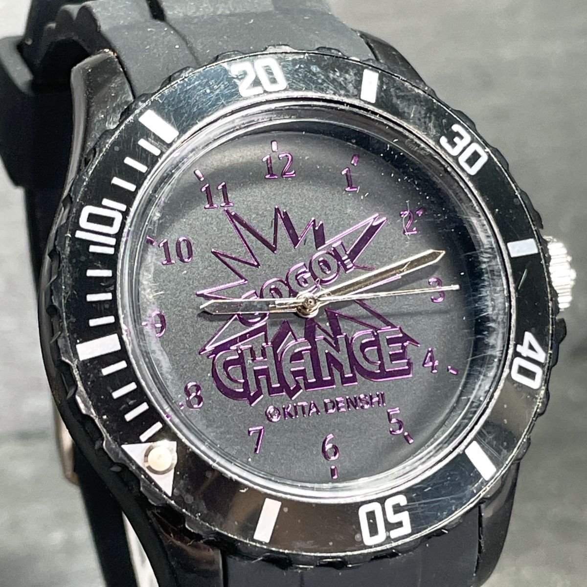 美品 GO GO CHANCE ジャグラー 腕時計 アナログ クオーツ 3針 ブラック ラバーバンド パープル ステンレススチール ユニセックス